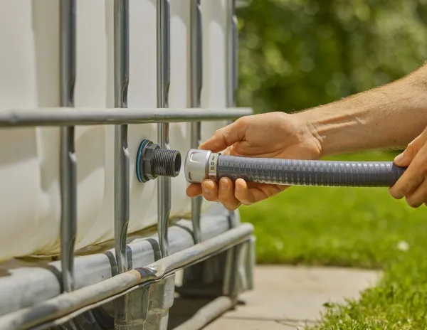 Med denne tankforbindelse kan du lettere end hidtil tilslutte din vandpumpe eller slanger til din vandtank eller tønde og på den måde nemt oprette en efterfølgende forbindelse. Forbinderen har et 33,3-mm-udvendigt gevind (G1) og et 26,5-mm indvendigt gevind (G3/4), med hvilket du kan tilslutte alle typer fittings på både inde- og ydersiden af tanken.