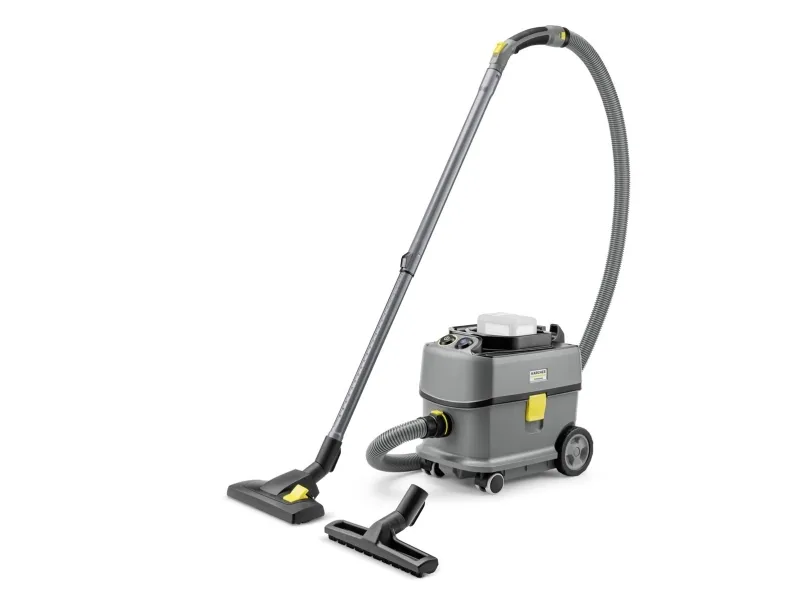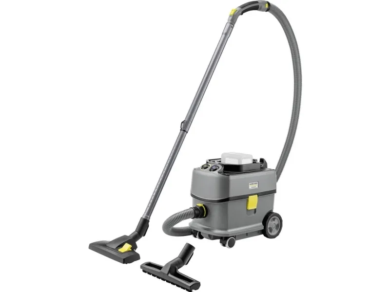 tørsuger T 10/1 BP Adv Beholdermateriale: Plast eco!efficiency-tilstand Sammenklappeligt håndtag. Integreret opbevaring af tilbehør Omstilleligt gulvmundstykke Parketmundstykke Polsterdyse Fugemundstykke Fleece filterpose Motorbeskyttelsesfilter Alsidigt anvendelig, robust og bæredygtig: Vores batteridrevne tørsuger T 10/1 BP Adv består af 45% genvindingsmateriale* og fremstilles dermed ressourcerskånsomt. Den overbeviser med fremragende sugestyrke, omfattende tilbehør og et attraktivt pris-/ydelsesforhold. Dens lange levetid og robusthed viser sig også under chassis, kabinet, bumper og på de store hjul. De 36 volt meget effektive Kärcher Battery Power+ -batterier garanterer førsteklasses rengøringsresultater. Da støjen fra T 10/1 BP Adv på trods af den høje sugestyrke kun ligger på 57 dB(A), kan den til enhver tid anvendes i støjfølsomme områder som hoteller eller hospitaler. Den kompakte støvsuger er vipsikker og manøvredygtig og kan nemt transporteres ved hjælp af det sammenklappelige bærehåndtag. Fugedysen og polsterdysen medfølger og kan altid opbevares lige ved hånden på T 10/1 BP Adv. Omfattende tilbehør medfølger: Sugeslange, antistatisk manifold, let, højdeindstilleligt teleskopsugerør af aluminium, omskiftelig gulvdyse og parketmundstykke. Batterier og hurtigoplader skal bestilles separat.