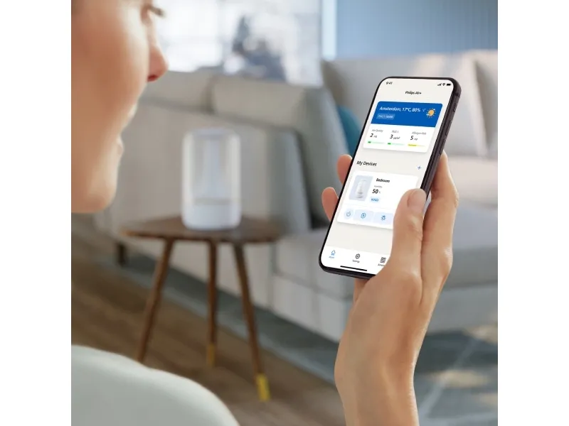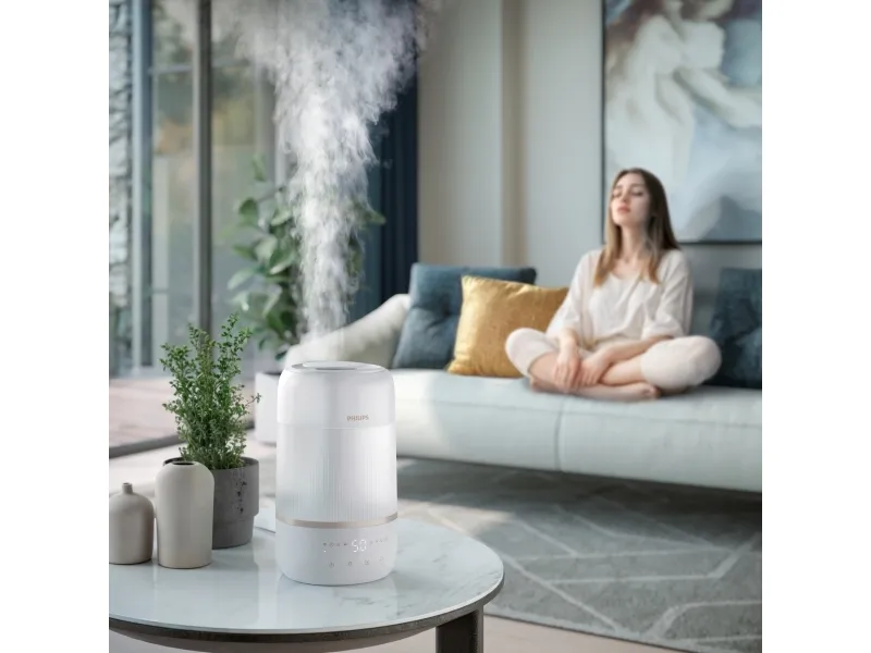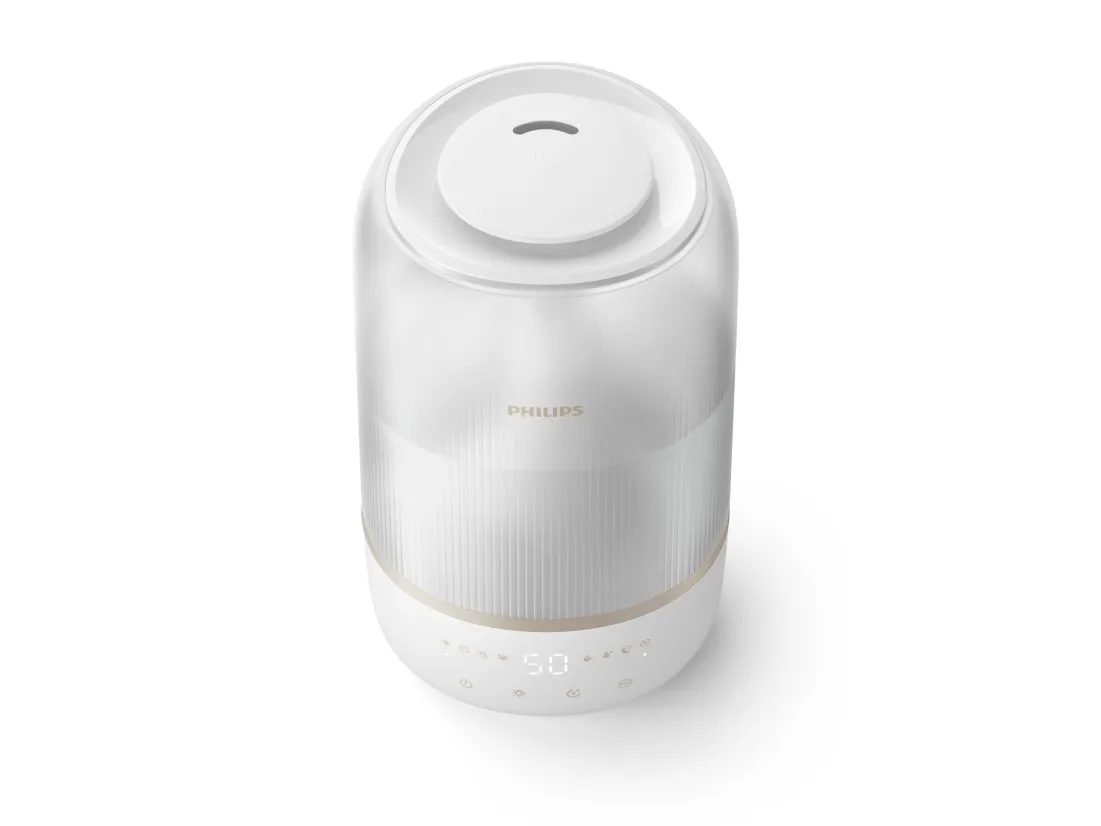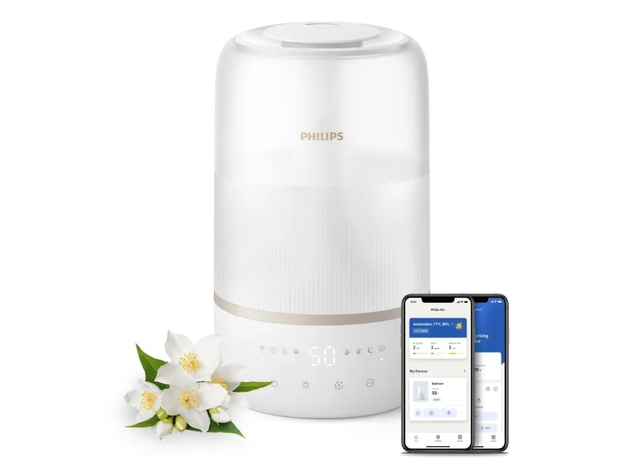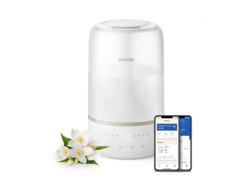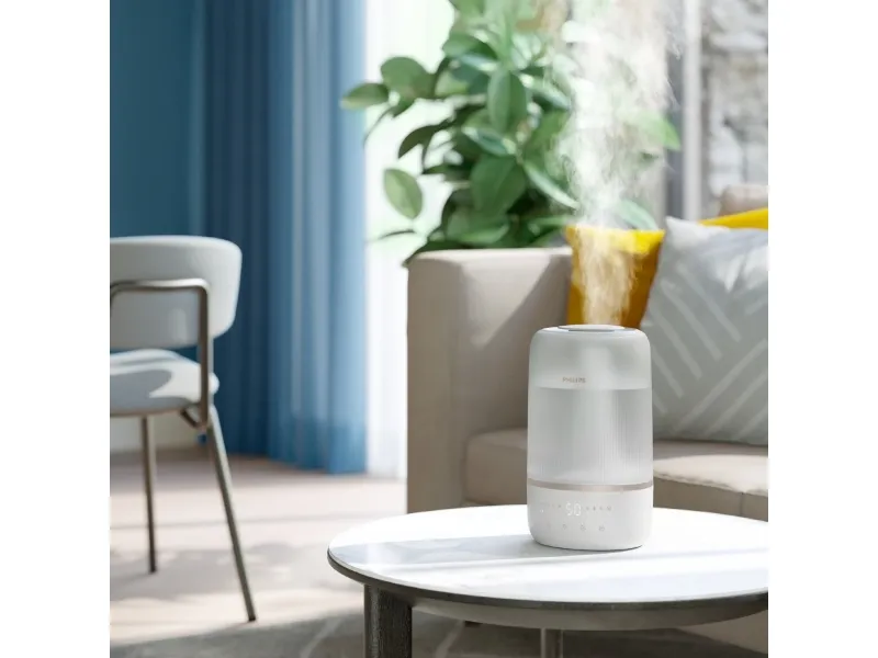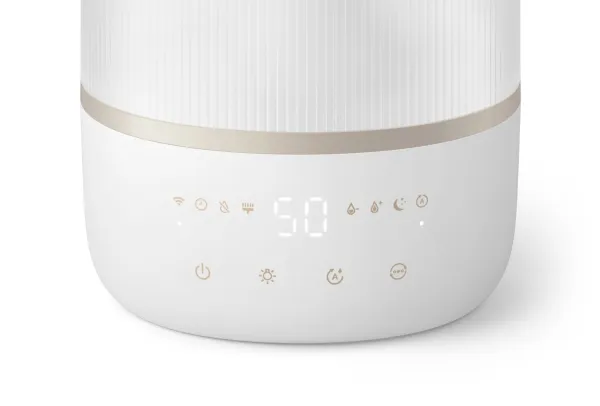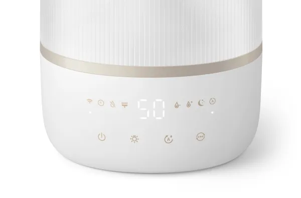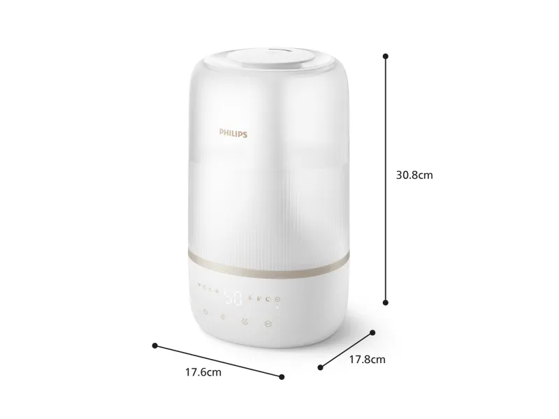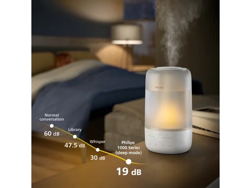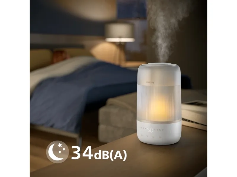 The Philips Series 1000 HU1510 humidifier is designed to enhance air quality in spaces up to 41 sq.m, promoting a healthier environment. With a tank capacity of 3 liters, this table-top humidifier delivers up to 6.6 L of humidification every 24 hours, ensuring optimal moisture levels in the air. The automatic and sleep modes make it easy to operate, while the three speed settings allow for customized use based on personal preference. This humidifier is IoT-compatible, providing the convenience of monitoring and control through smartphone compatibility. Moreover, the Philips Series 1000 HU1510 is designed for efficiency, consuming only 0.5 W while in standby mode and featuring a 12-hour timer for convenience. Its quiet operation, with a sound pressure level of just 34 dB(A), makes it ideal for any living space, especially during nighttime use. The indicator for an empty tank ensures that users are always aware of their humidifier's status, adding an extra layer of functionality and ease of use.