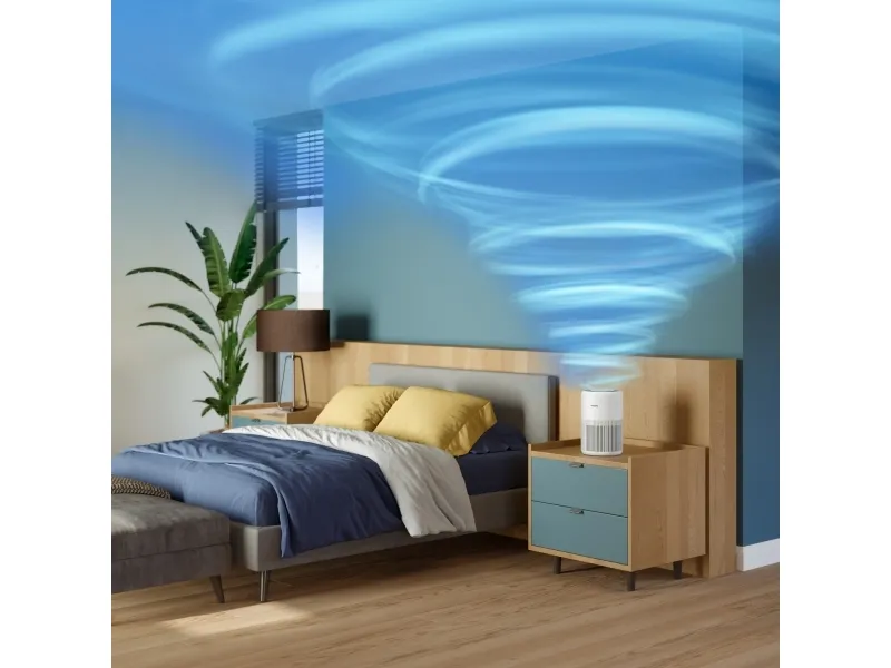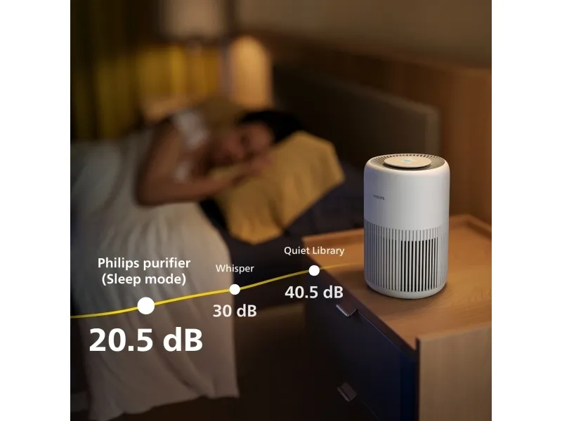 CADR (partiklar): 250 m3/t Maks. rúmstødd: upp til 65 m2 Filtrering: 3-lags (forfiltur + HEPA NanoProtect + virkið kol) / 3-í-1 HEPA-filtur fylgir við Partiklufiltrering: 99,97% við 0,003 μm Følari: PM2,5 (Luftfølari) Ljóðstøði: 20,5-49 dB(A) Effekt: max. 23 W (biðitíð <2 W) App & smart: Philips Air + (Wi-Fi 2,4 GHz) + røddarstýring (Google/Alexa) Barnatrygg lás: Ja Filturbil (mælt): uml. 1 ár Mál (H×B×D): 36,4 × 24,0 × 23,8 cm Vekt: 2,7 kg