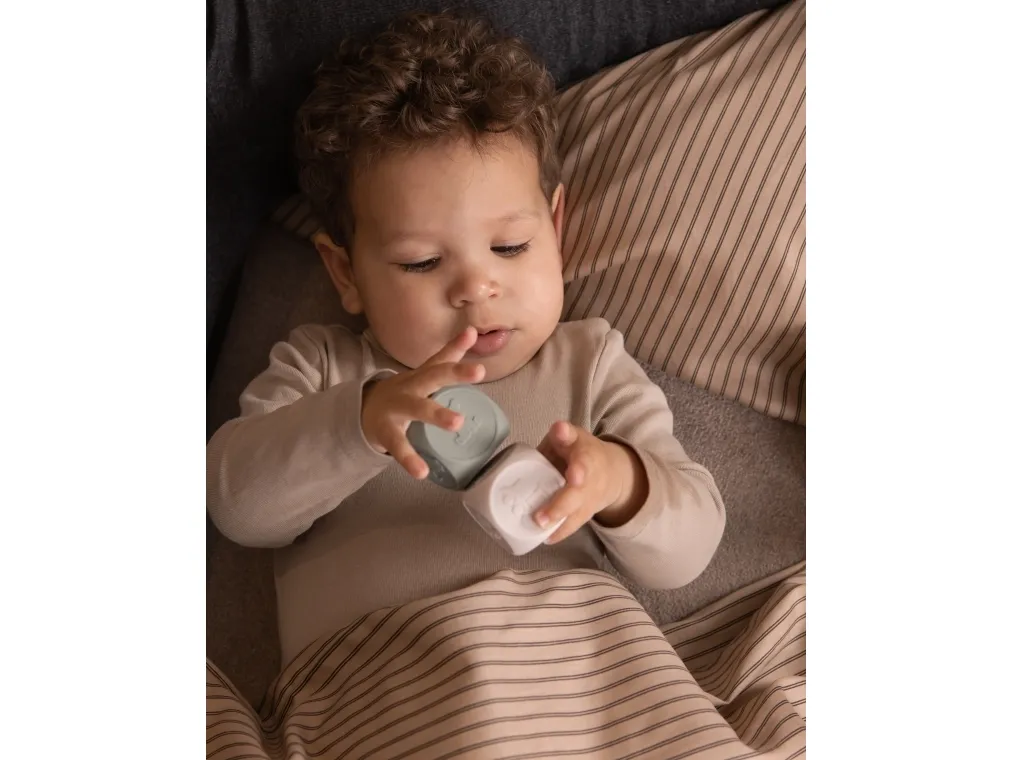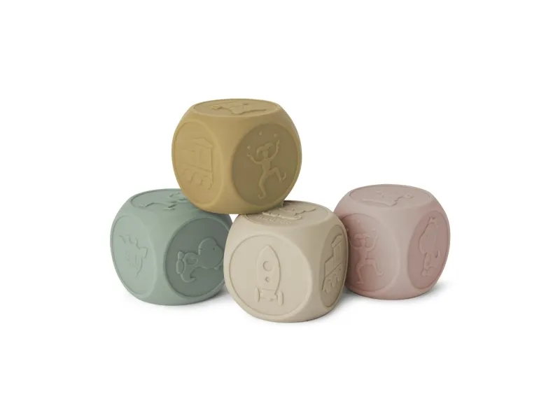 SÆT MED 4 TERNINGER I FLEKSIBEL SILIKONE Vores sødeste terninger er et perfekt legetøj til børn. Materialet er uden skadelige kemikalier og legetøjet er blødt og og går ikke i stykker. Nemt at rengøre.