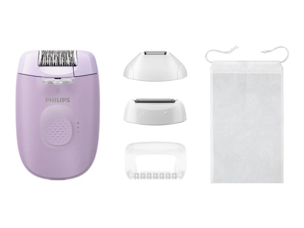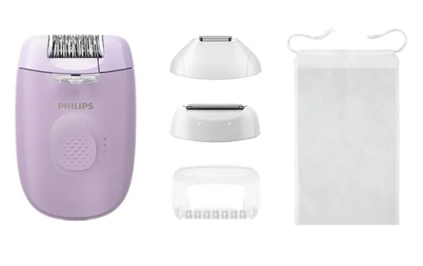 Included with the epilator are essential accessories like a storage bag, cleaning brush, and power adapter, allowing for convenient maintenance and mobility. The washable head feature ensures easy cleaning, promoting hygiene and longevity of the product. With a non-slip grip design, the Philips Series 4000 BRE257 is crafted for ease of use, making it an essential addition to skincare routines.