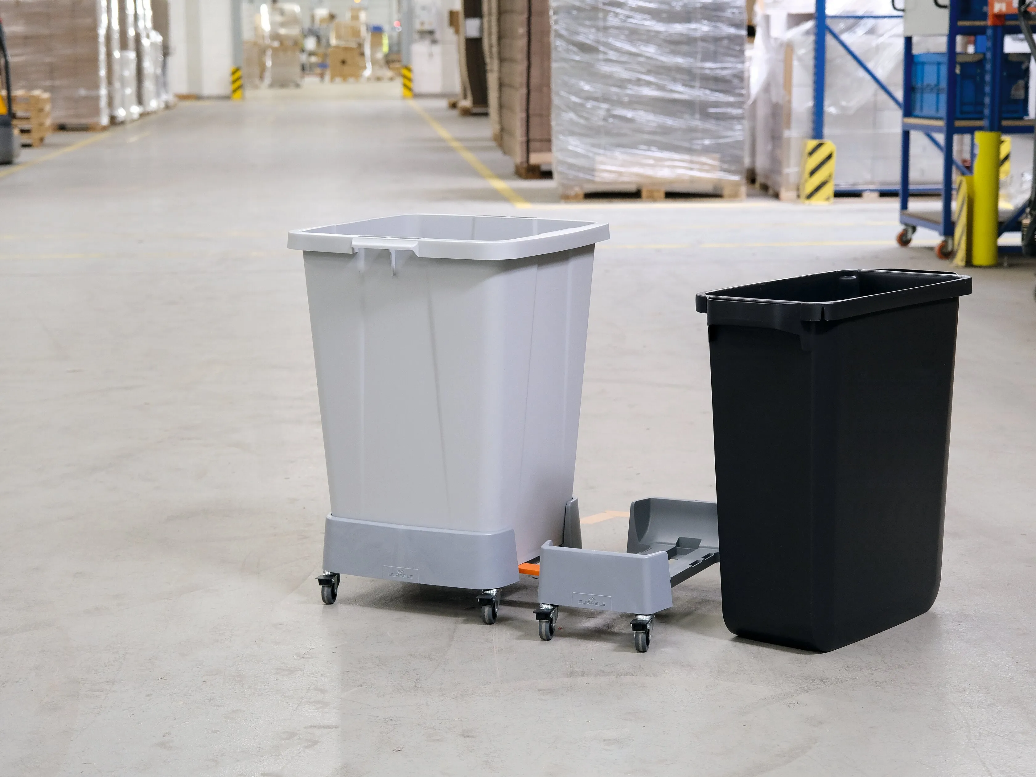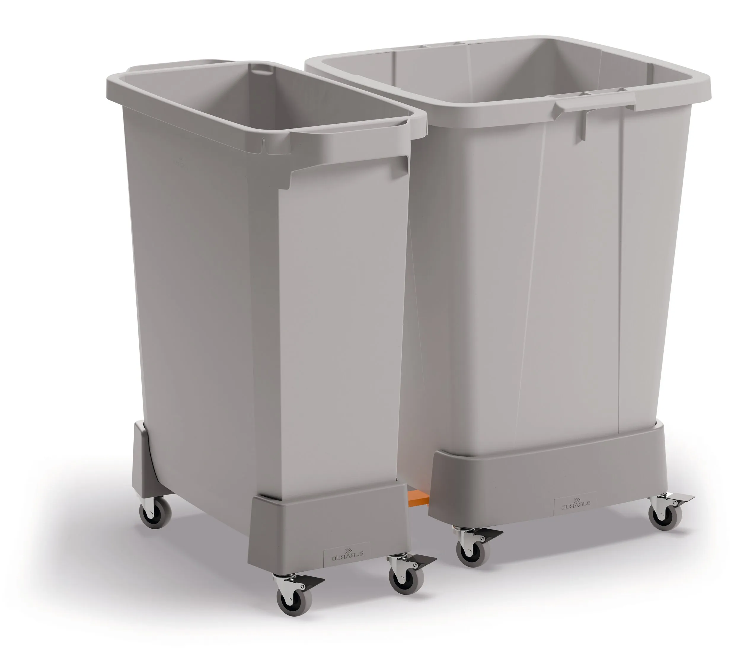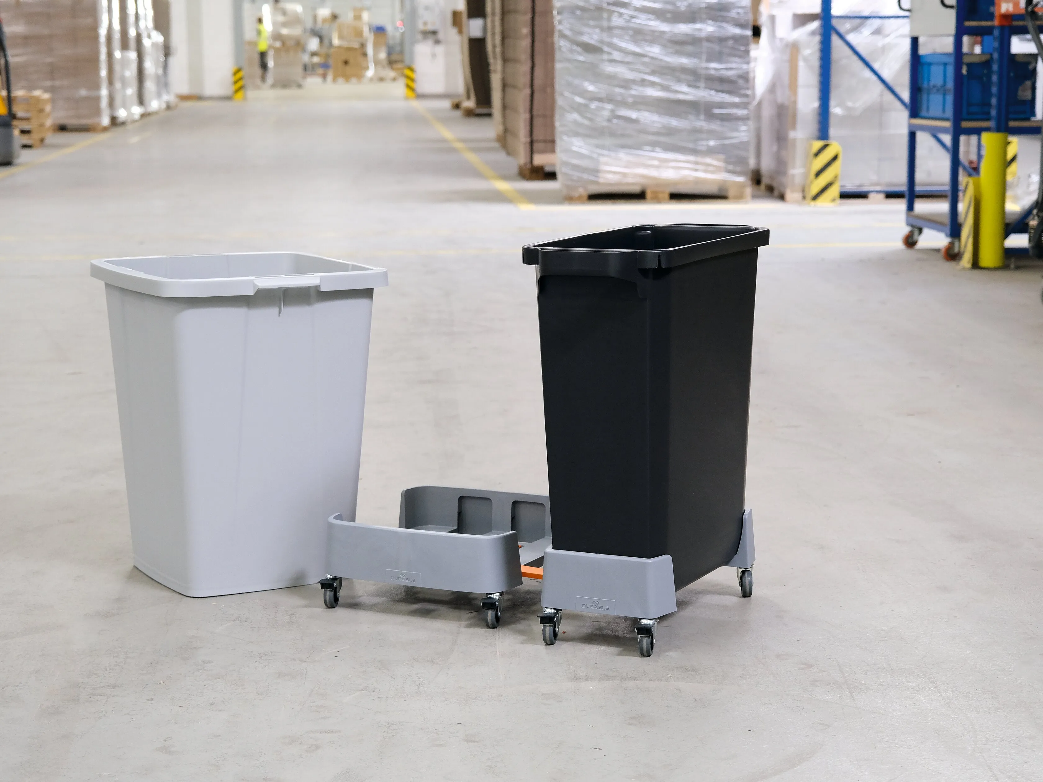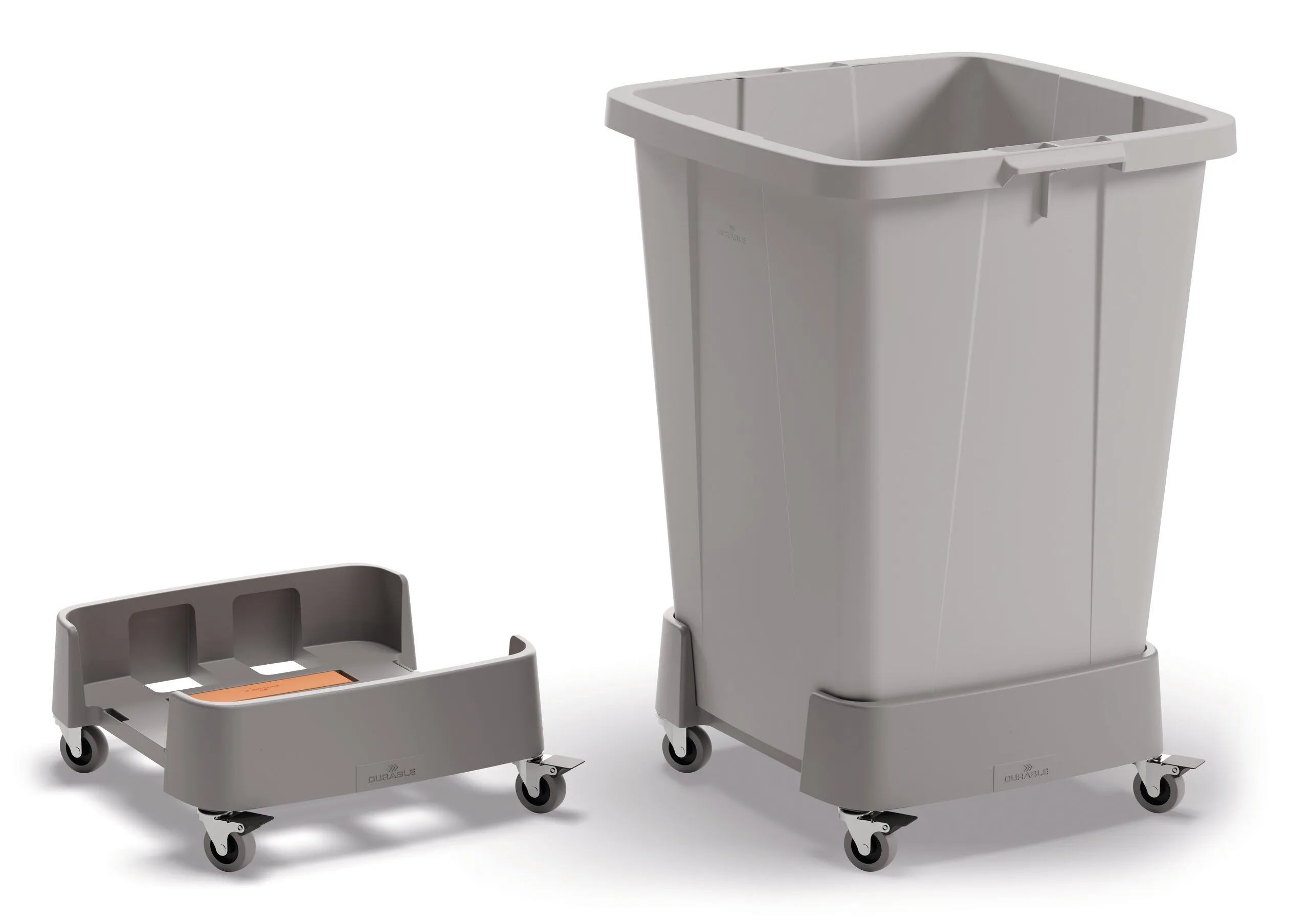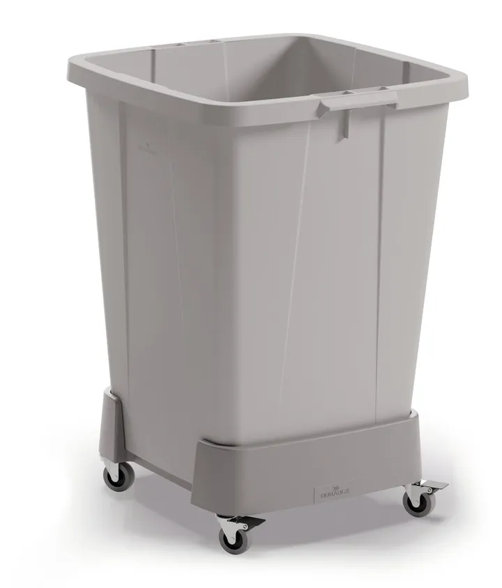 • Vogn til en DURABIN® 90 L kvadratisk affaldsspand • Fremstillet af 80 % genanvendt polypropylen (undtagen de drejelige hjul) • Egnet til indendørs brug og udendørs på overdækkede arealer • Kan anvendes på flade overflader i lagerbygninger, produktionsområder, kantiner osv. • Med 4 drejelige hjul, to med bremser • Kan sammenkobles med DURABIN® 60L rPP-vogne og/eller DURABIN® 90L rPP-vogne ved hjælp af de medfølgende forbindelsesstykker (maks. 4 vogne i træk). • Kan belastes med op til 100 kg