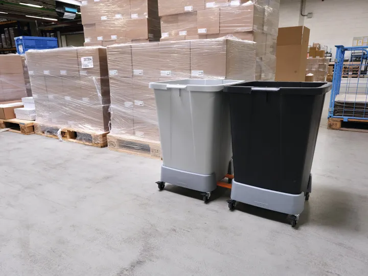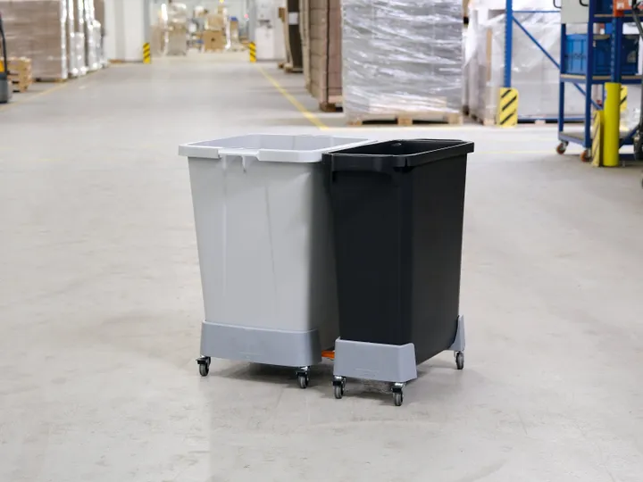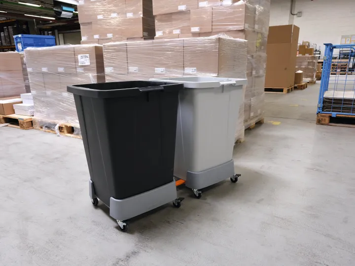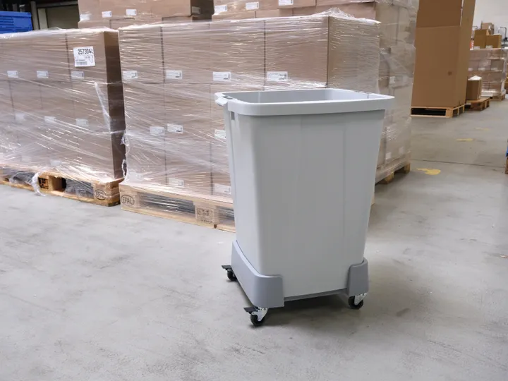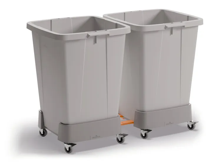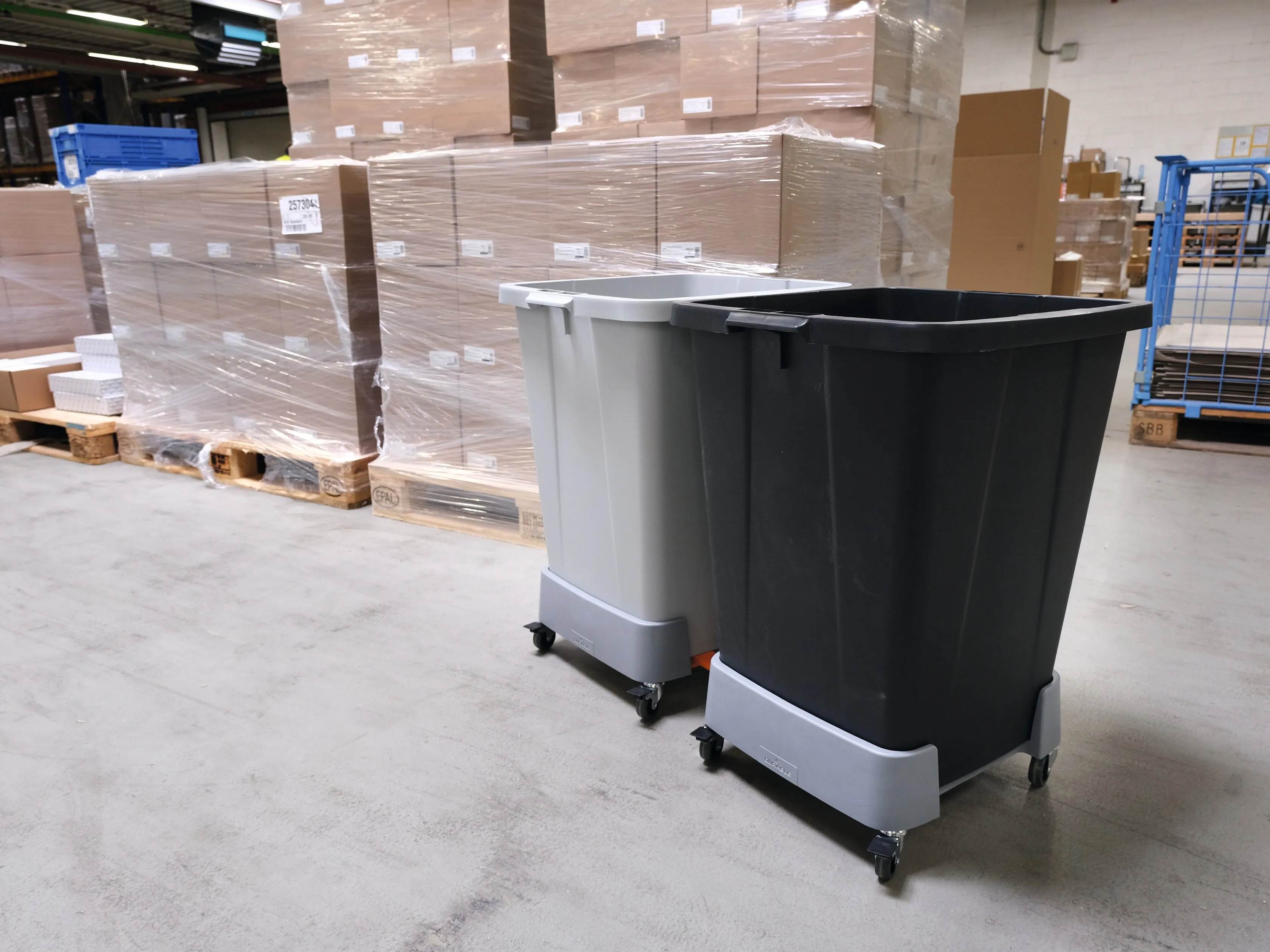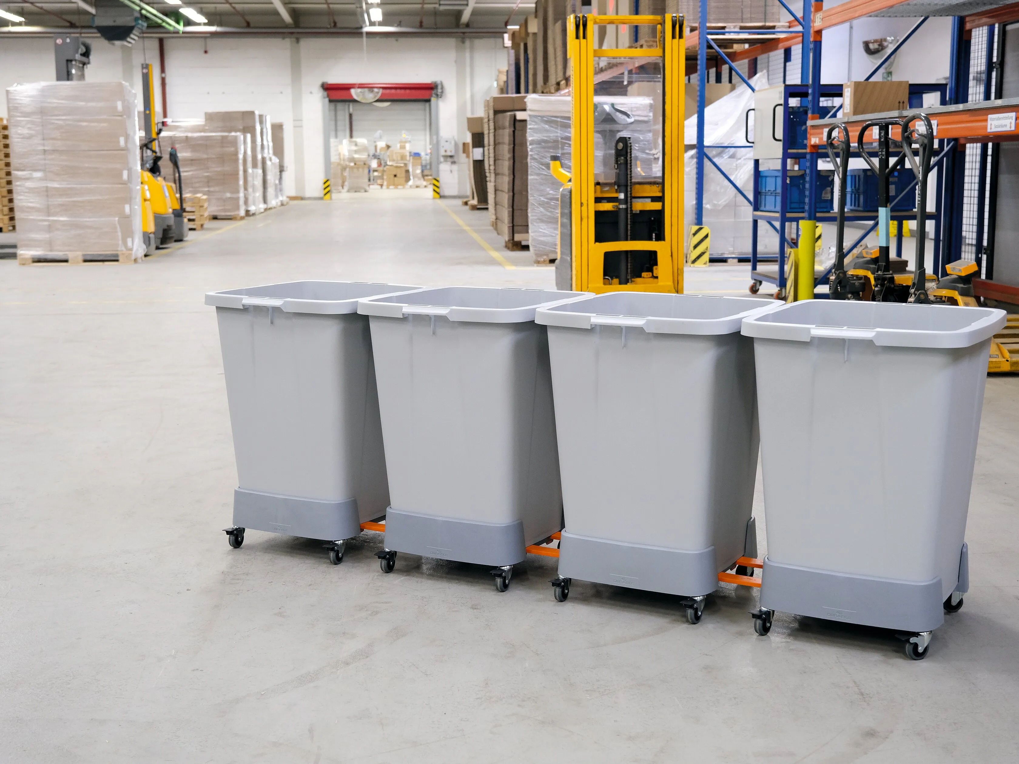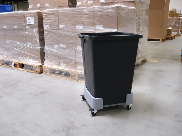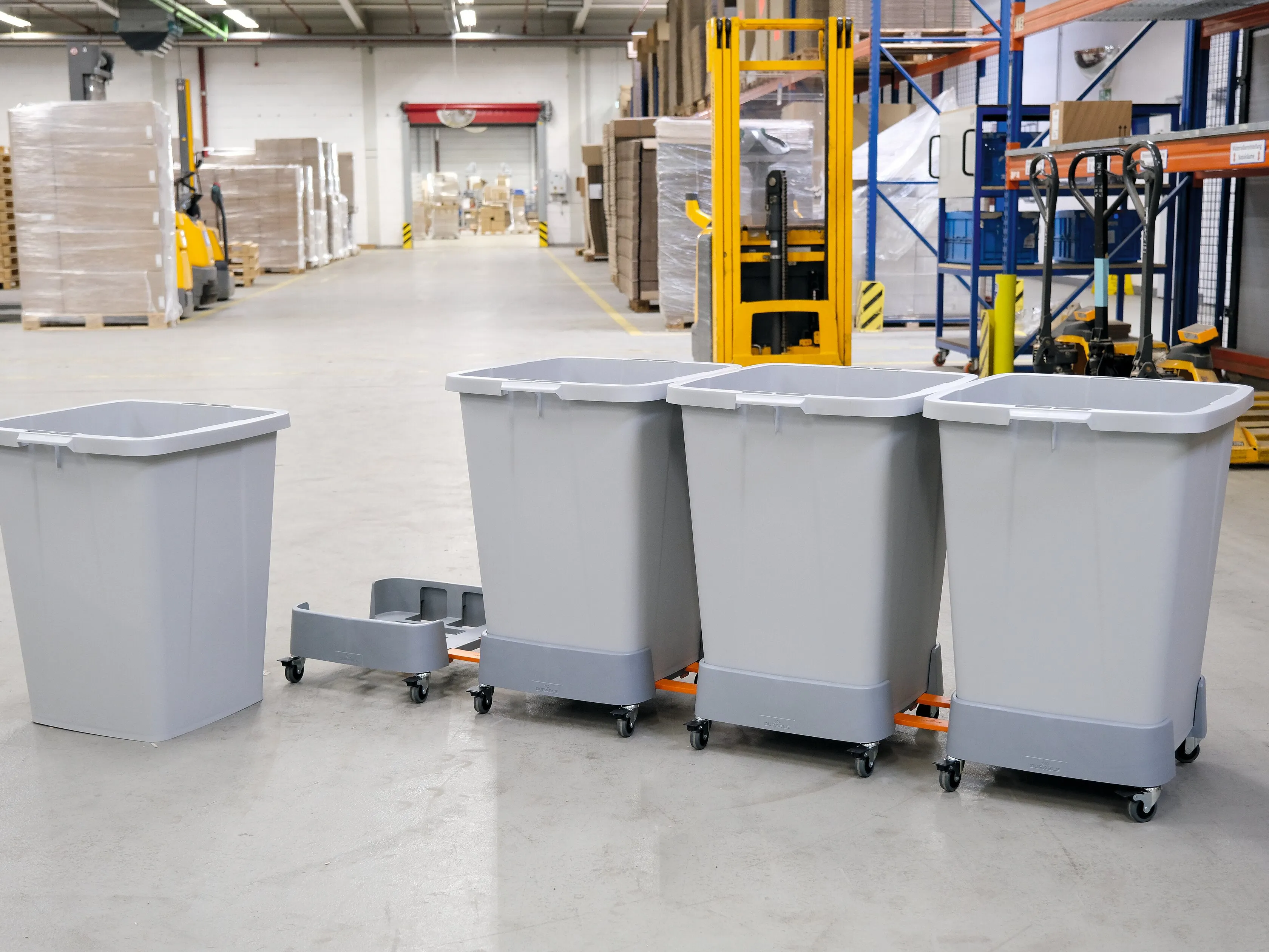 • Vogn til en DURABIN® 90 L kvadratisk affaldsspand • Fremstillet af 80 % genanvendt polypropylen (undtagen de drejelige hjul) • Egnet til indendørs brug og udendørs på overdækkede arealer • Kan anvendes på flade overflader i lagerbygninger, produktionsområder, kantiner osv. • Med 4 drejelige hjul, to med bremser • Kan sammenkobles med DURABIN® 60L rPP-vogne og/eller DURABIN® 90L rPP-vogne ved hjælp af de medfølgende forbindelsesstykker (maks. 4 vogne i træk). • Kan belastes med op til 100 kg