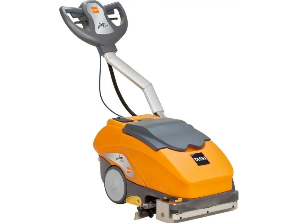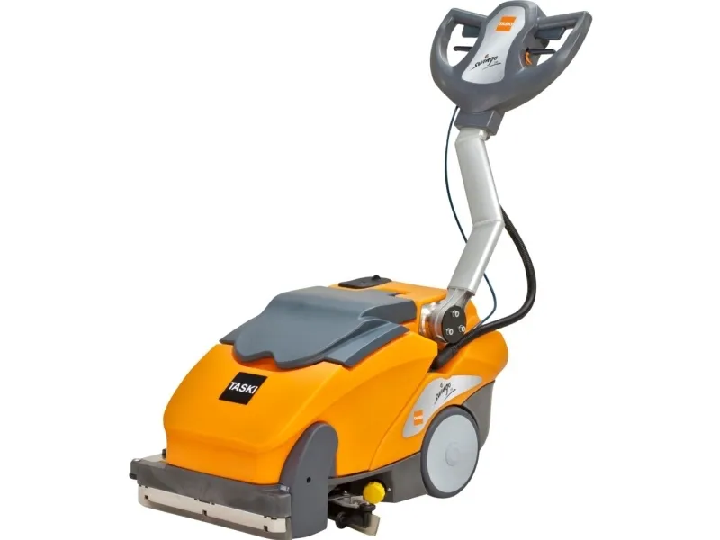 Cleans and dries more effectively compared to manual cleaning.Accessible to confined areas due to the very low height of the machine body and the handle which can be folded backwards.Due to the systems perfect drying results the risk of slip-falls caused by wet floors is reduced to the minimum.Significantly higher hygiene levels, improving the floor appearance as well as consistency of result.Taski swingo 350 B BMS. Power source: Battery. Width: 465 mm, Depth: 1040 mm, Height: 600 mm