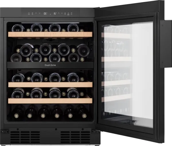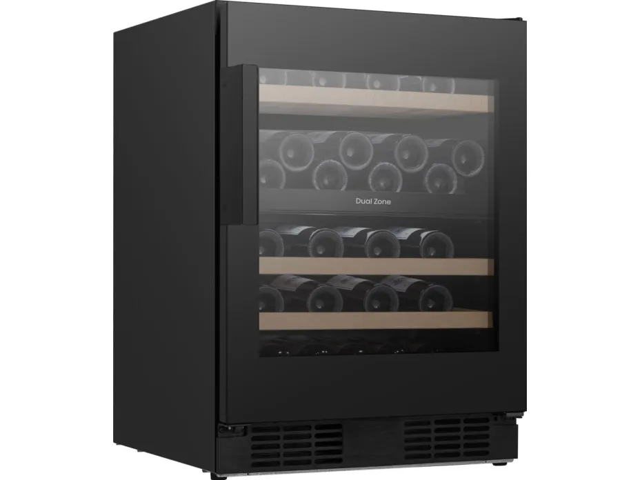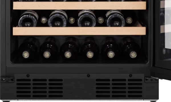Den angivende flaskekapacitet er udregnet med en bordeauxflaske som standard og uden hylder i skabet. Dvs. at det faktiske antal af flasker som skabet kan indeholde, med hylder monteret, vil være mindre end den angivne mængde i produktets specifikationer.