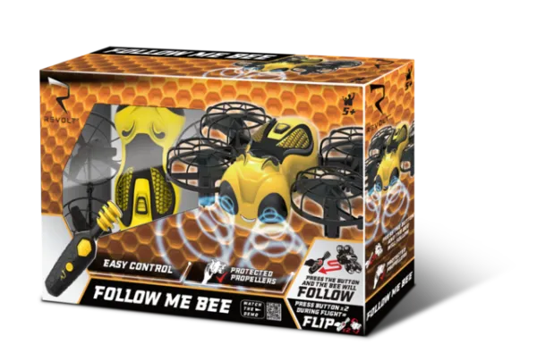 Follow Me Bee fra Syma er det ultimative stykke fjernstyrede flyvelegetøj til førskolebørn og er supernem at betjene! Bare tryk på fjernbetjeningen for at starte, og slip for at lande. Når bien er i luften, vil den følge dit barn og holde en fast afstand på ca. 1 meter. Når dit barn trykker på knappen, vil bien trofast følge dem og skabe en interaktiv legeoplevelse. For ekstra sjov, dobbeltklik på fjernbetjeningsknappen, mens bien flyver, og den vil udføre et spændende flip i luften. Se dit barns fantasi svæve med Follow Me Bee! USB-ladekabel medfølger. Fra 5 år. - størrelse: 11,9 cm L x 11 cm B x 3,96 cm H - frekvens: 2,4GHz - fjernbetjening kræver 2 x AAA batterier (ikke inkluderet) - bien bruger Li-Ion batteri 3,7V/500mAh (inkluderet) - ladetid:ca. 90 minutter - flyvetid pr. opladning: op til 7 minutter - rækkevidde: op til 3 meter