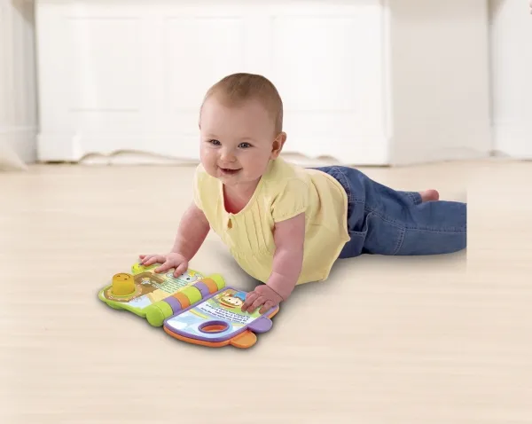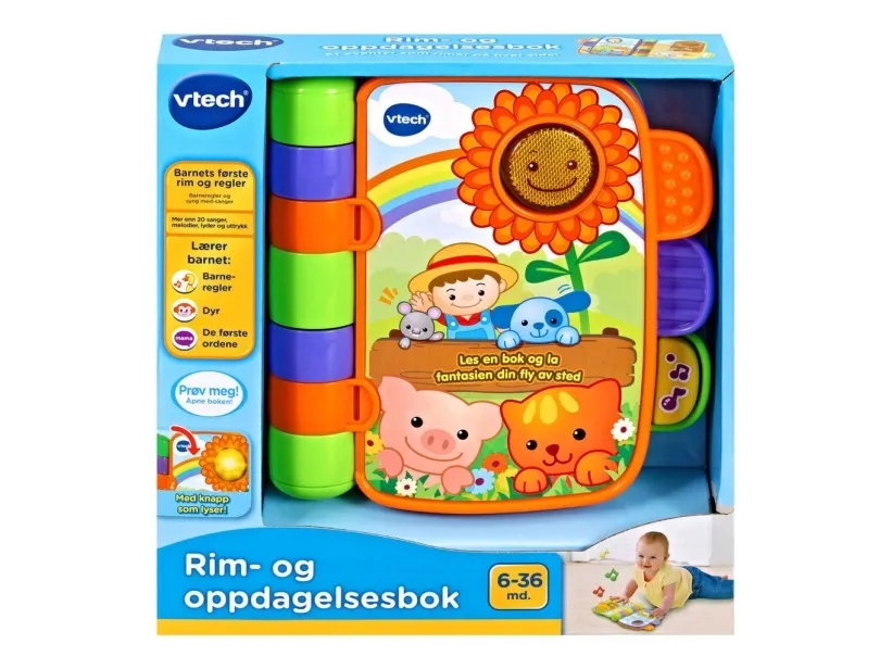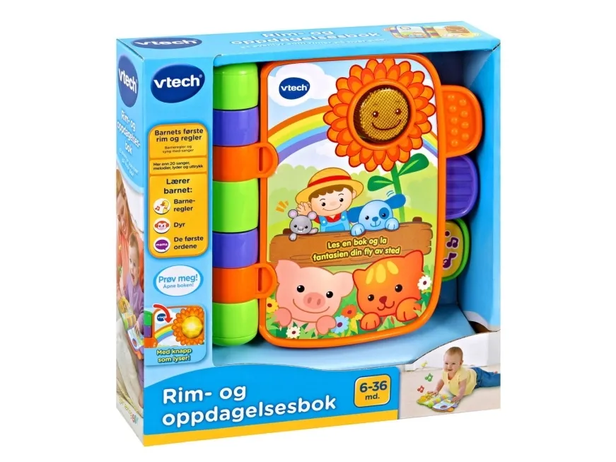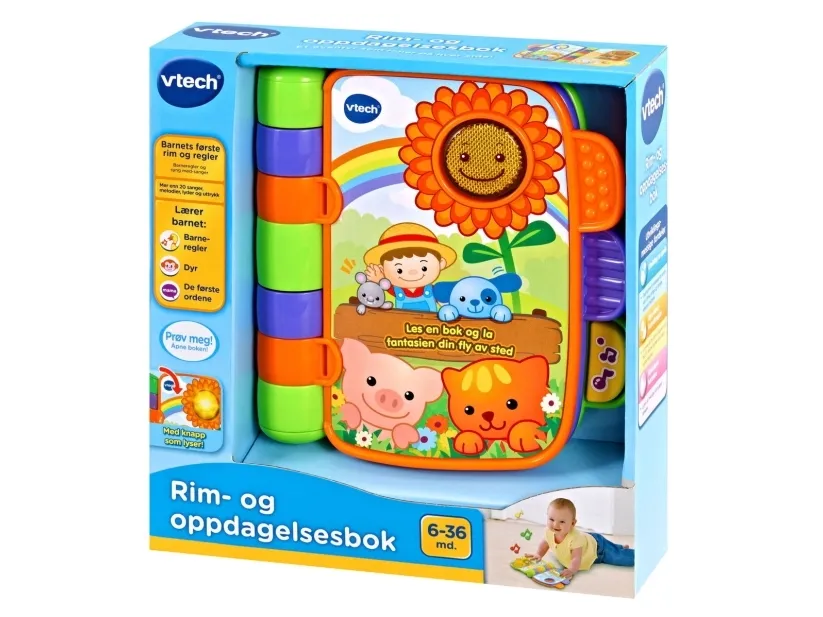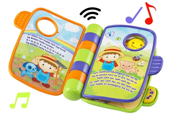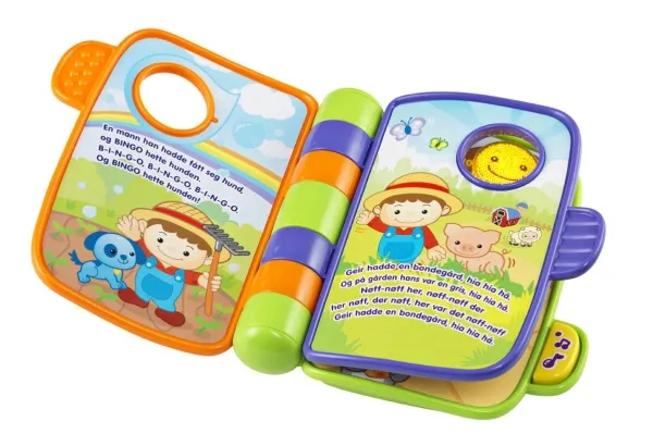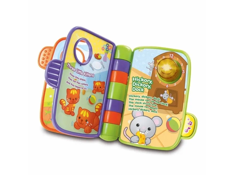 Denne interaktive elektroniske bog indeholder 4 klassiske syng-med børnerim, som babyer kan lytte til og synge og læse med i, mens de bliver ældre. Indeholder tykke sider, der er nemme at vende, og som genkender, hvilket rim der er på siden, når dit barn vender dem. Dit lille barn vil blive optaget af lysene på siderne og sangene, mens genkendelses- og hukommelsesevnerne udvikles.