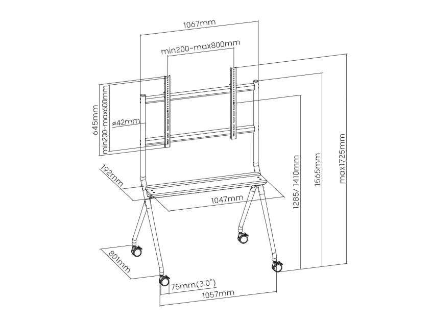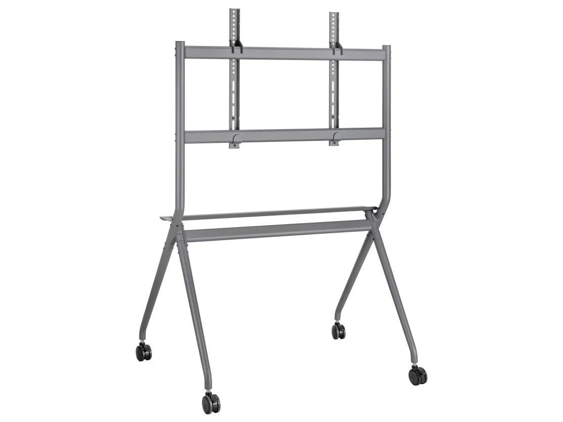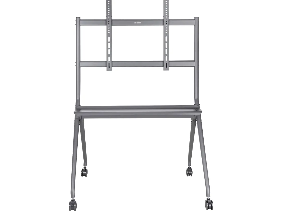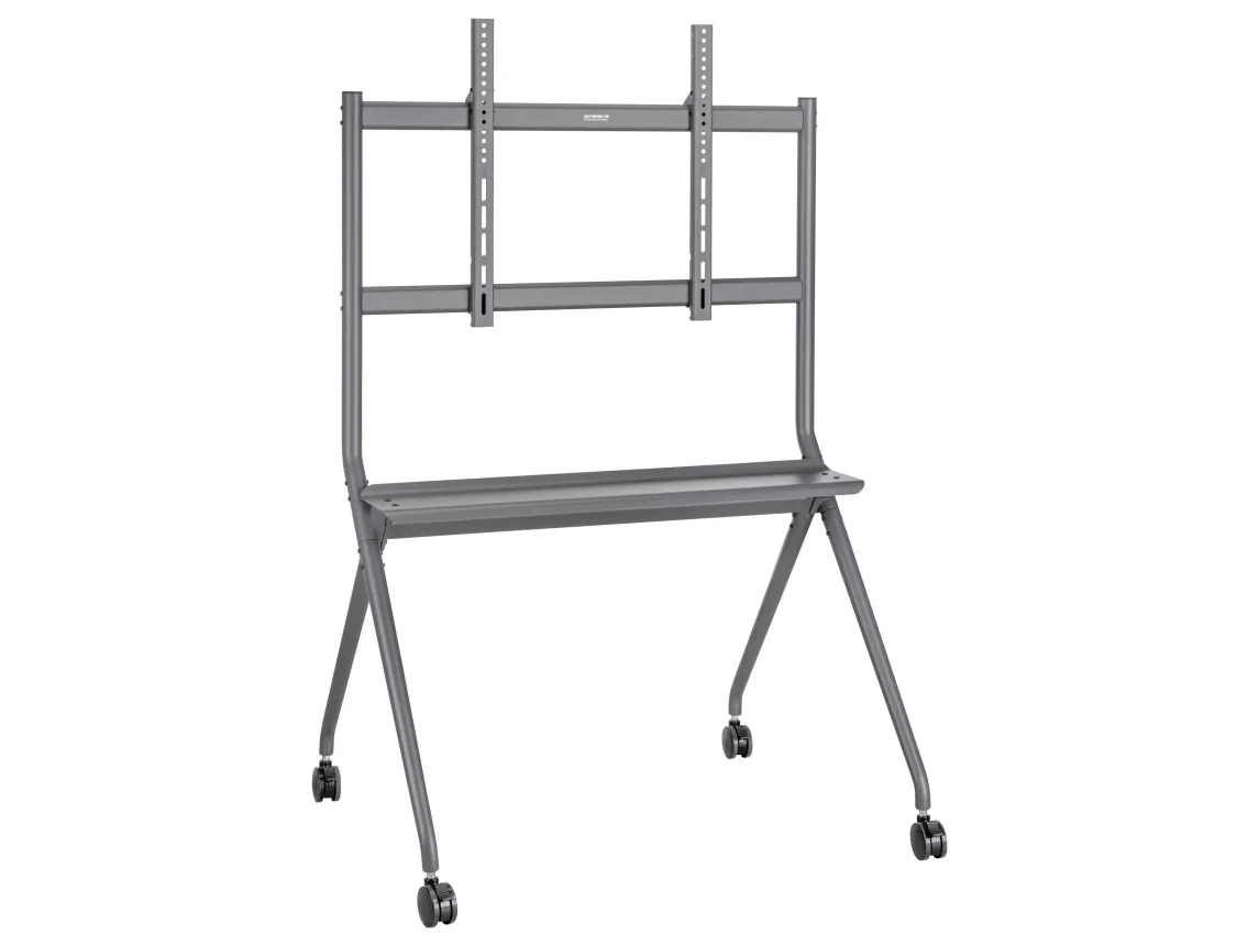 Denne robuste TV-vogn er den ideelle løsning til brug i studier, konferencerum, skoler eller på messer. Med sin imponerende bæreevne på op til 120 kg og understøttelse af alle gængse VESA-standarder fra 200x200 til 800x600, står den sikkert på skærmen fra 50 til 86 tommer.