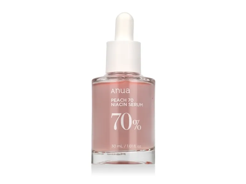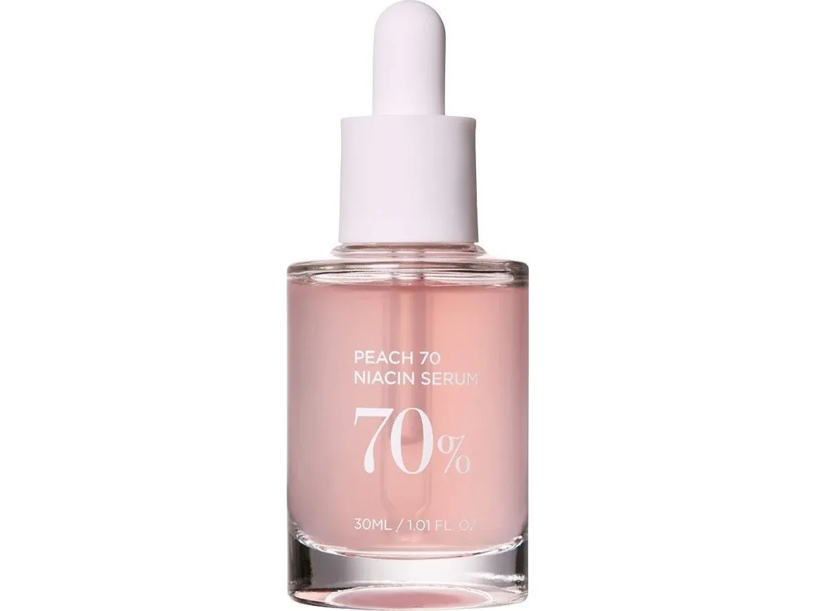 Peach 70% Niacinamide Serum er beriget med en høj koncentration af niacinamid (også kendt som vitamin B3), der er kendt for sine utallige fordele for huden. Dette serum hjælper blandt andet med at reducere synligheden af hyperpigmentering, ujævn hudtone og fine linjer, samtidig med at det opretholder hudens naturlige fugtbalance.