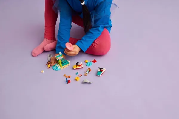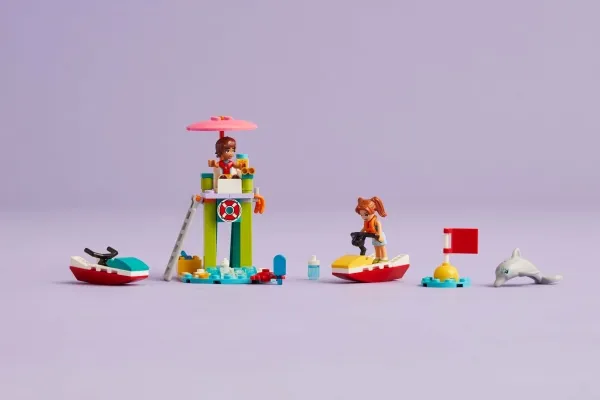Byggelegetøj med livreddertema med 2 minidukker og en delfinfigur – Inspirer til fantasifuld leg med LEGO® Friends legetøjet Vandscooter til børn, der indeholder tilbehør til rolleleg