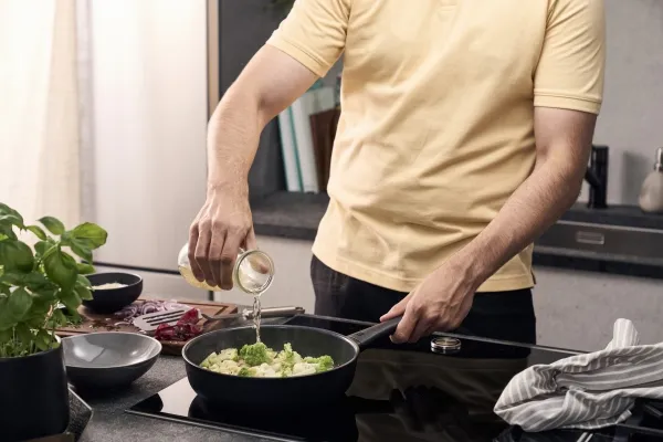 Særligt velegnet til fedtfattig, skånsom stegning af fisk og grøntsager samt braisering af panderetter