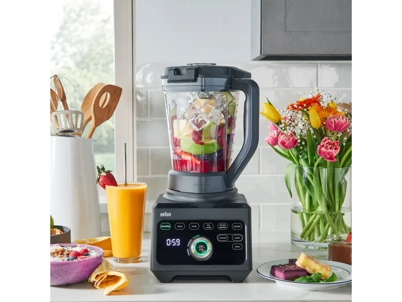 Oplev Braun PowerBlend 9, som er designet til dem, der sætter pris på funktionalitet og stil i deres køkkenapparater. Denne blender er udstyret med en robust 1,6 kW motor, der kan nå hastigheder på op til 45.000 o/min, hvilket sikrer, at dine ingredienser bliver perfekt blendet. Uanset om du knuser is til smoothies, tilbereder varme supper eller laver frosne desserter, er du dækket ind med PowerBlend 9 med dens 10 hastighedsindstillinger og ekstra pulsfunktion. Tritan-kanden er holdbar og BPA-fri, så dine kreationer er sikre for hele familien. Med aftagelige dele, der tåler opvaskemaskine, er rengøringen nem. Braun PowerBlend 9 er et vigtigt redskab i ethvert moderne køkken.
