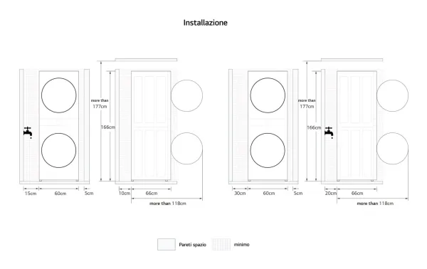 Dybde med åben dør på 90 grader 110 cm Dybte uden dør 56.5 cm
