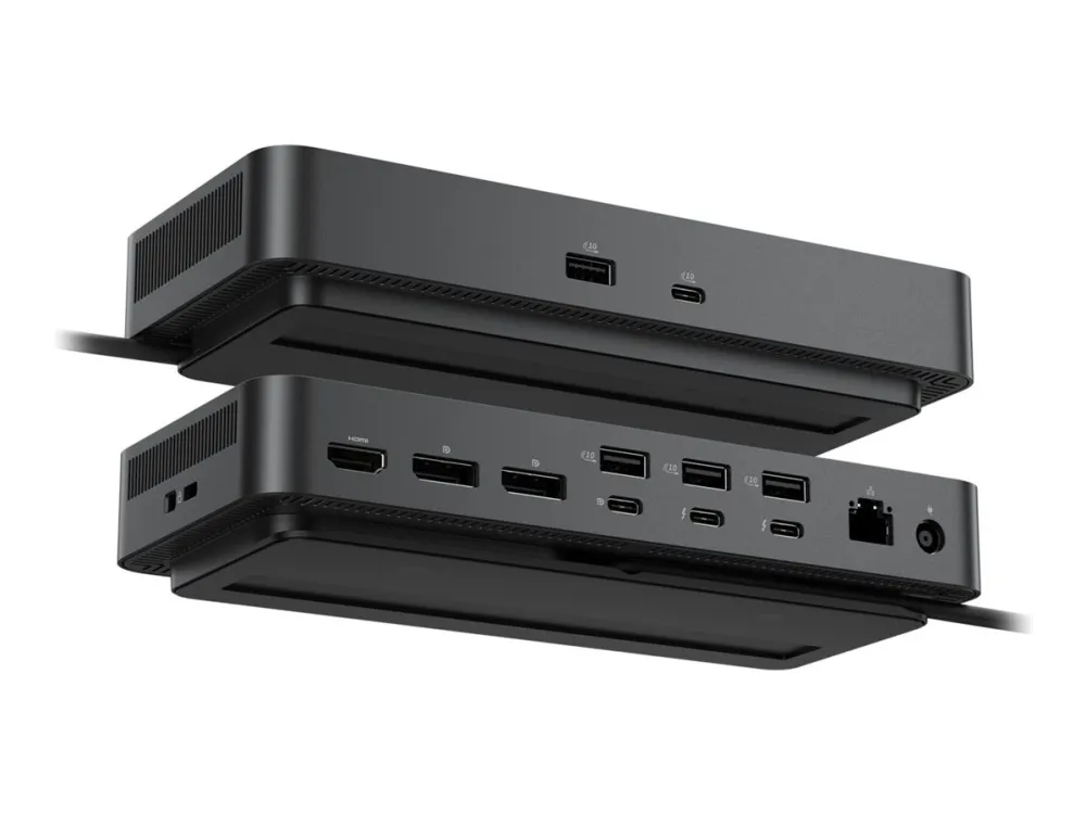 Dell Pro Thunderbolt 4 Smart Dock SD25TB4 øger produktiviteten med problemfri tilslutning. Denne dockingstation tilbyder flere grænseflader, herunder USB 3.2 Gen 2, Thunderbolt 4 og HDMI, hvilket muliggør opsætning af to eller tre skærme til store arbejdsområder. Med en strømforsyning på op til 130 W til Dell-systemer og 96 W til ikke-Dell-systemer sikrer den, at enhederne forbliver opladet, samtidig med at effektiviteten maksimeres. Den er bygget til alsidighed og indeholder funktioner som wake on LAN, fjernopdatering af firmware og kernel direct memory access (DMA)-beskyttelse, hvilket gør den til en løsning for professionelle, der søger sikkerhed og IT-administrationsfunktioner. Det integrerede Thunderbolt 4-kabel, der måler 0,83 m, forenkler tilslutningen og opretholder samtidig ydeevnen i dataoverførsel og videoudgang op til 8K-opløsning, hvilket gør denne dock til et uundværligt tilbehør til enhver arbejdsstation.