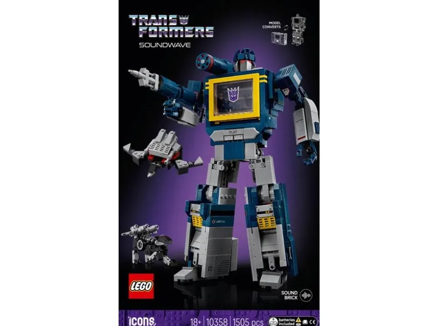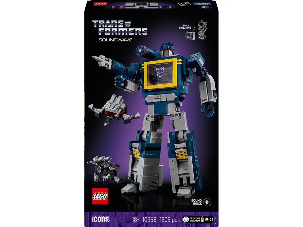 Byg en imponerende udstillingsmodel, eller overrask én, du holder af, med LEGO® Icons byggesættet Transformers: Soundwave (10358), et sæt til hjemmet eller kontoret, designet til voksne og fans af den episke sci-fi-filmserie. Byg en detaljeret LEGO actionfigur af den ikoniske decepticon-robot og hans trofaste følgesvende Ravage og Laserbeak.