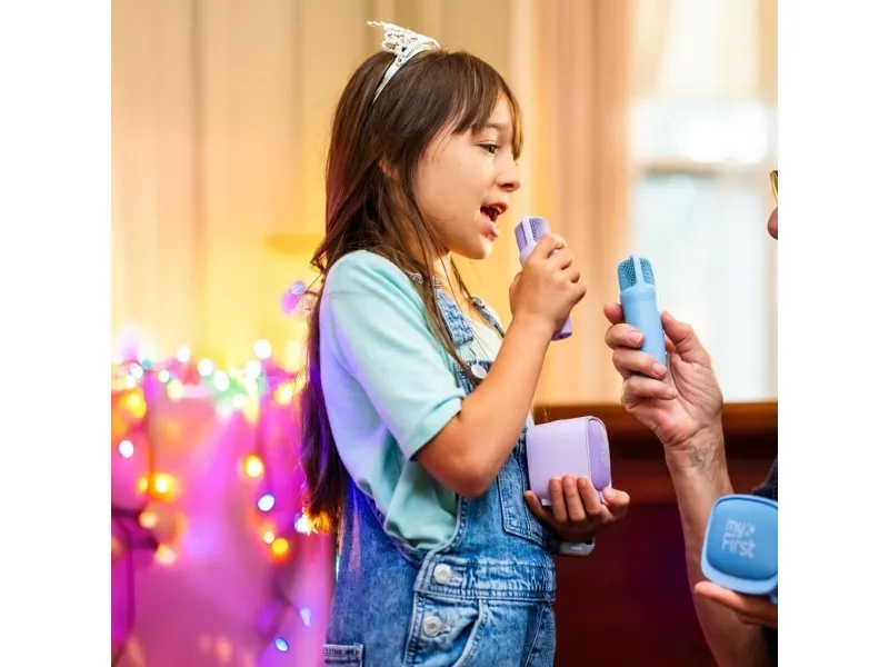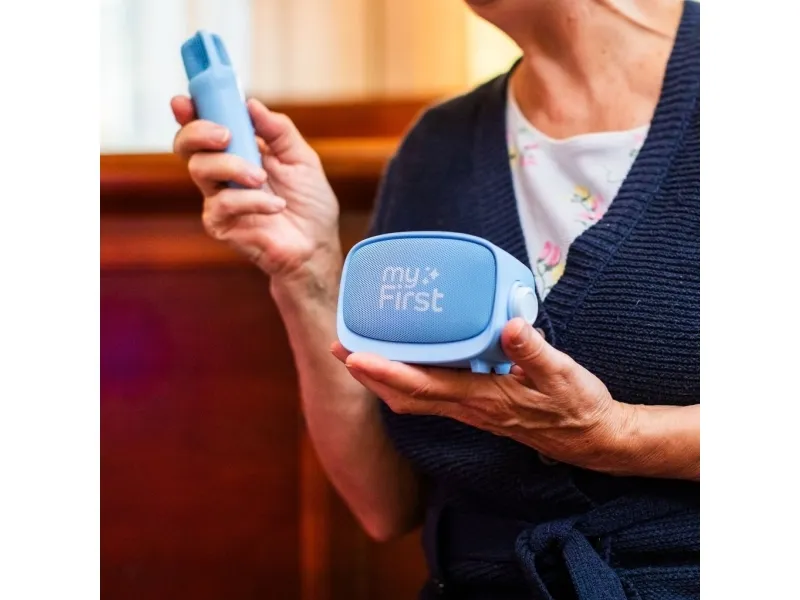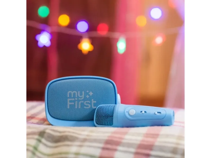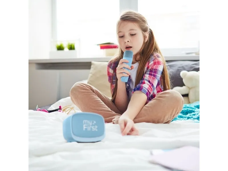 Introducing the myFirst Voice 2 - Interactive Voice Recorder with Touch Screen for Kids a delightful and versatile gadget designed to spark creativity and provide endless entertainment for children. Combining a powerful wireless speaker and dynamic microphone capabilities this innovative device is perfect for interactive play and storytelling. With easy connectivity options and fun voice-changing filters it transforms any environment into a lively karaoke session or imaginative playground.Dynamic Voice ModesCrystal Clear Sound QualityCompact and Portable DesignWireless Music PlaybackVoice and Reverb ControlDynamic Voice Modes With myFirst Voice 2 children can explore a variety of entertaining voice modes at the touch of a button. The device's AI Voice Changing Technology effortlessly transforms their voice into different characters offering endless creativity for storytelling and interactive play. The modes available include normal elderly childlike cute and deep each providing a distinct sound experience that brings stories to life. Crystal Clear Sound Quality Designed to deliver exceptional audio performance the myFirst Voice 2 ensures every note and word is heard with clarity. The separation of the microphone and speaker results in high-quality sound output while the echo enhancer adds depth making every performance stand out. Special vibration bass technology further enriches the sound providing an immersive experience for listeners. Compact and Portable Design The myFirst Voice 2 is compact and lightweight making it simple for kids to handle and transport wherever their adventures lead. This portable design ensures children can enjoy entertaining activities on the move transforming any space into their personal sound stage for endless enjoyment. Wireless Music Playback The device supports wireless music playback through Bluetooth connectivity or a micro SD card giving kids the freedom to listen to their favorite tunes with ease. This versatile feature allows them to play music without the hassle of physical connections enhancing their entertainment options. Voice and Reverb Control With intuitive voice and reverb control children can fine-tune their sound to suit their preferences. These controls enable them to experiment with various effects adding a touch of magic to their performances and making each interaction as unique as their imagination. Package includesmyFirst Voice 2 - BlueUSB-C charging cableUser manualProduct specificationsColour: BlueSpeaker model: 52 mm/4 OhmWeight: 287 gramsSpeaker output: 5 wattsTransmission frequency: 2.4 GHzBattery capacity: Speaker- 1200 mAh microphone-500 mAhMaximum volume working time speaker: 110 minutes microphone: 6 hoursCharging time 75 minutesUSB-C charging: 1A (DC 5V)Connection distance: 10 metersBluetooth Connectivity: BT 5.0Audio Jack: 3.5 mm AUX