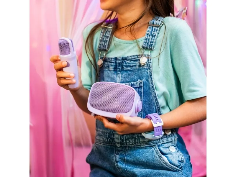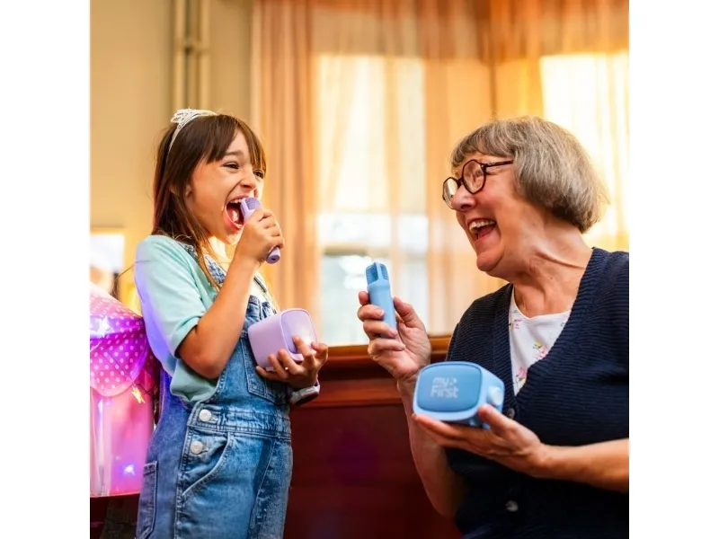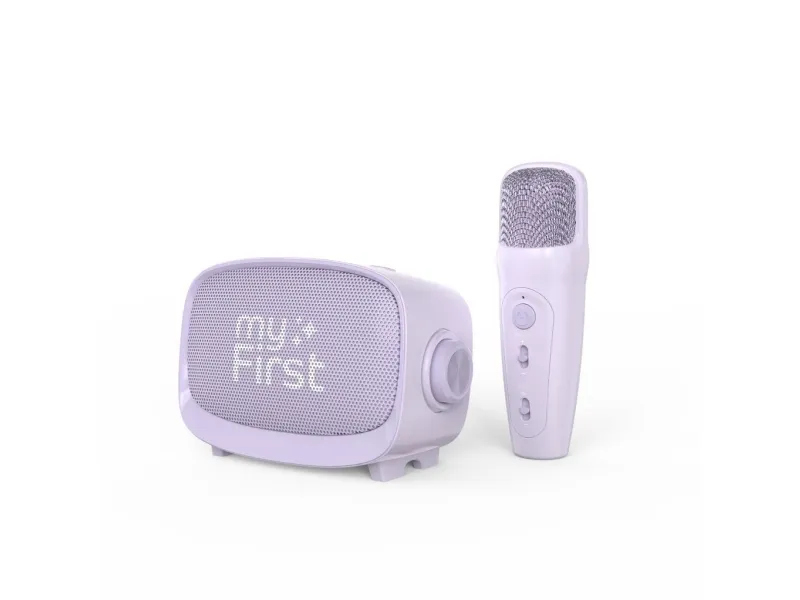 Turn any room into a sing-along stage or storytelling studio. myFirst Voice 2 blends a kid-friendly microphone with a powerful portable speaker delivering ultra-clear sound fun voice effects and simple controls. It?s the easy way to spark creativity at parties family nights and everyday play.Wireless playback with Bluetooth Micro SD and AUX5 dynamic voice-changing effectsEcho enhancer with voice and reverb controlImmersive ultra-clear audio with vibration bassCompact portable and perfect for karaoke funWireless playback with Bluetooth Micro SD and AUX Play music your way. Connect instantly via Bluetooth to your phone or computer for a wireless speaker experience pop in a Micro SD card for on-the-go playlists or use the AUX input when you want a quick plug-and-play setup. Versatile inputs make it easy to bring the soundtrack to any occasion. 5 dynamic voice-changing effects Let little stars explore big sounds. Choose from five playful voice filters to add character to songs stories and performances. From silly to dramatic voice modes turn everyday moments into memorable shows and help build confidence on the mic. Echo enhancer with voice and reverb control Fine-tune your sound like a pro. Adjust voice levels dial in reverb and activate the echo enhancer to add depth and richness. These simple kid-friendly controls help every performance shine?clear balanced and just the way they like it. Immersive ultra-clear audio with vibration bass Feel the beat and hear every detail. Special vibration bass technology delivers deeper richer lows while maintaining crisp vocals for a captivating listening experience. Whether it?s karaoke night or story time the sound stays powerful and clear. Compact portable and perfect for karaoke fun Designed for small hands and big imaginations myFirst Voice 2 is easy to carry and built for everyday play. Bring it to parties sleepovers or family gatherings?set up is quick and the fun starts right away with the included microphone. Package includesmyFirst Voice 2 portable wireless speaker - PurpleDynamic microphoneProduct specificationsColour: PurpleSpeaker model: 52 mm/4 OhmWeight: 287 gramsSpeaker output: 5 wattsTransmission frequency: 2.4 GHzBattery capacity: Speaker- 1200 mAh microphone-500 mAhMaximum volume working time speaker: 110 minutes microphone: 6 hoursCharging time 75 minutesUSB-C charging: 1A (DC 5V)Connection distance: 10 metersBluetooth Connectivity: BT 5.0Audio Jack: 3.5 mm AUX