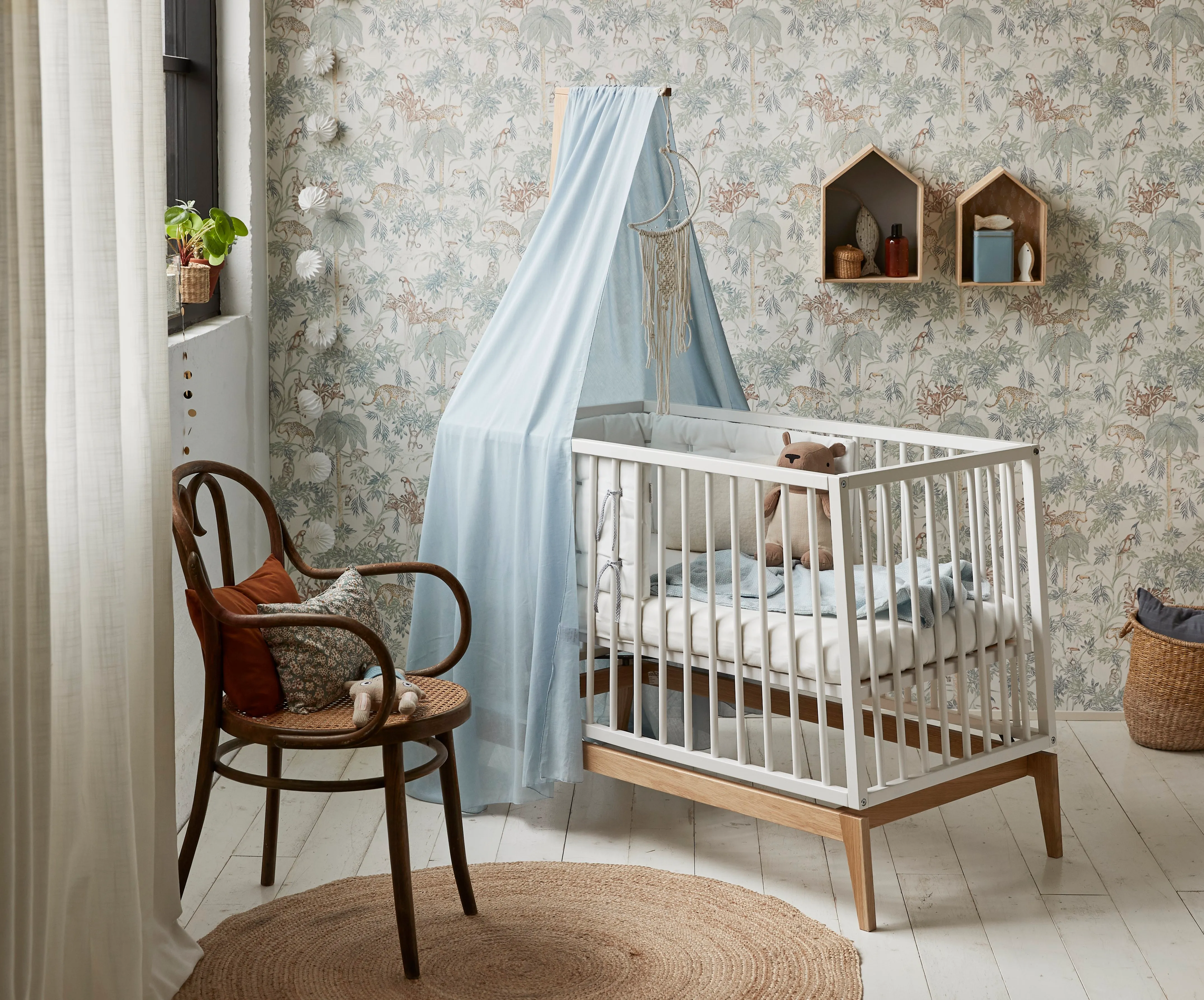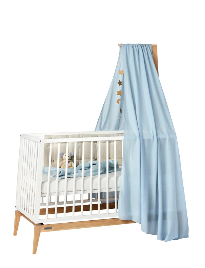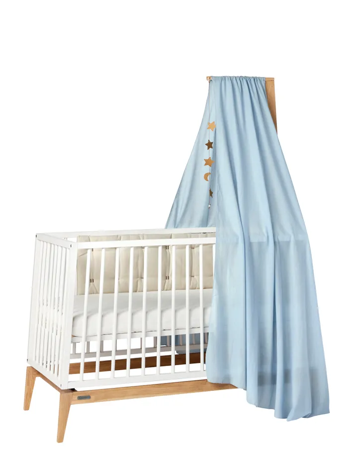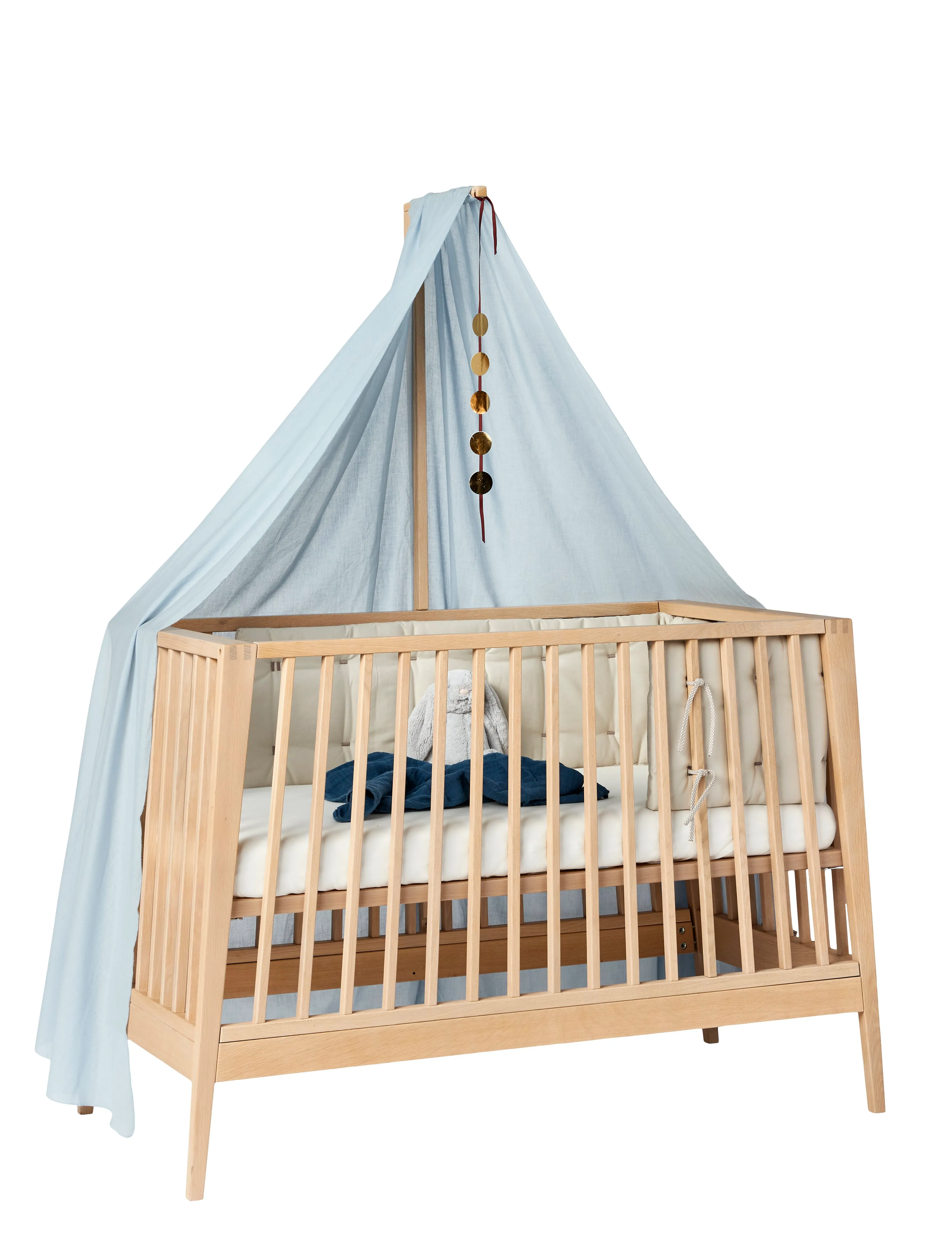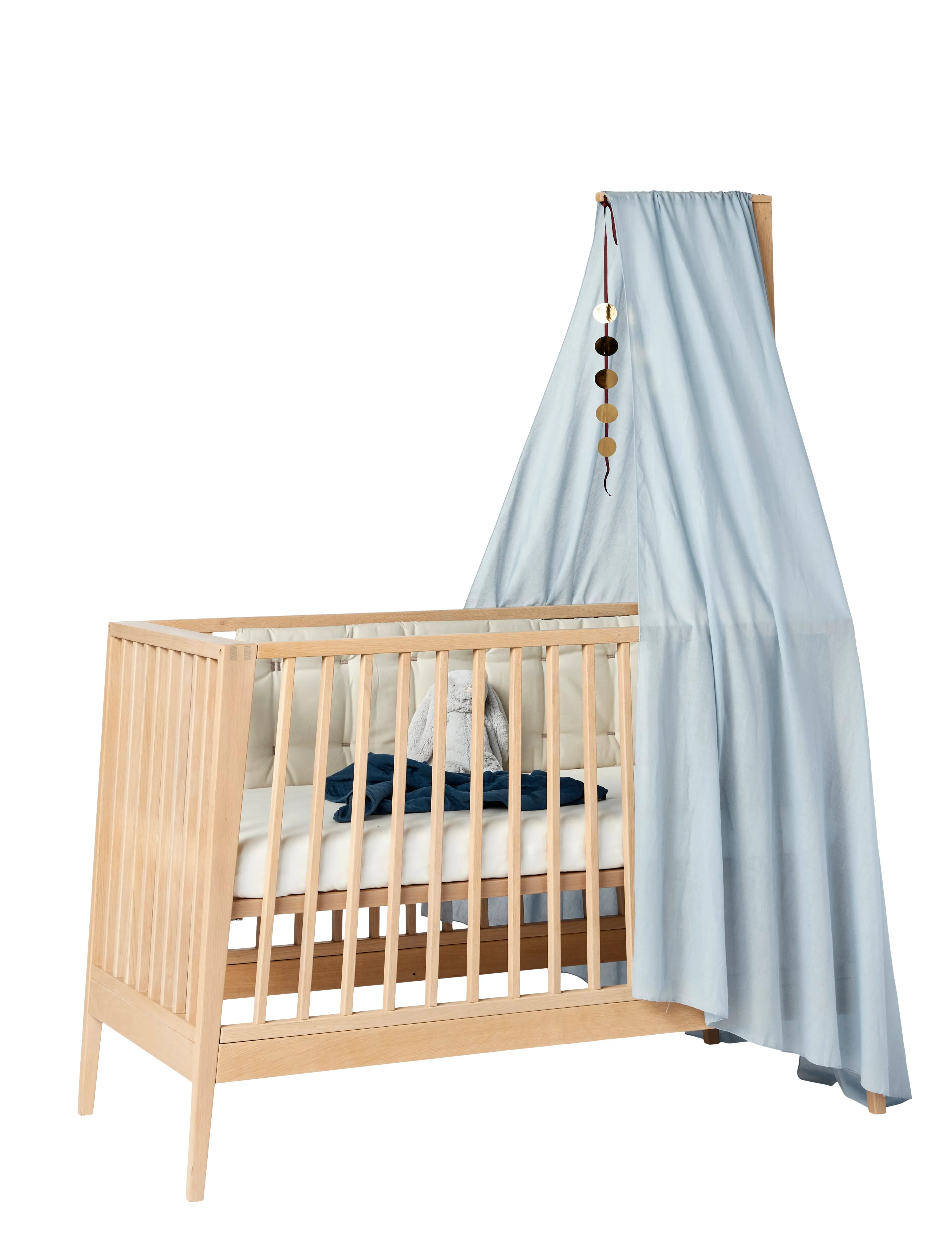 Skab en tryg lille ”rede” til dit barn med denne fine og lette sengehimmel, der passer til Leander Linea™ og Leander Luna babysengen. Himlen indrammer på smukkeste vis sengen og skærmer for udefrakommende støj og stimuli, så dit barn lettere kan finde ro. Den bløde, halvtransparente bomuldskvalitet får himlen til at falde flot, når den hænger fra den tilhørende himmelpind.Sengehimlen kan fastgøres midt på sengen og ved hovedgæret på himmelpinden.