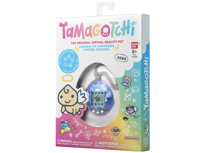 "Opfostr dit virtuelle kæledyr - fra æg til voksen! Tamagotchi er dit virtuelle kæledyr! Opfostr din Tamagotchi fra æg til voksen. og se din figur vokse i din hule hånd. Fodr den. tænd og sluk lysene. leg med den. giv den medicin. skyl ud efter dens toiletbesøg. og tjek dens sundhedstilstand. Du skal også disciplinere din Tamagotchi. hvis den forstyrrer dig. selv om den er tilfreds. mæt og du har rengjort efter den. ellers bliver den bare en usympatisk og uopdragen alien. når den bliver stor. Inkluderer også spil. hvor du skal gætte. i hvilken retning den bevæger sig hen næste gang. Fra 8 år."
