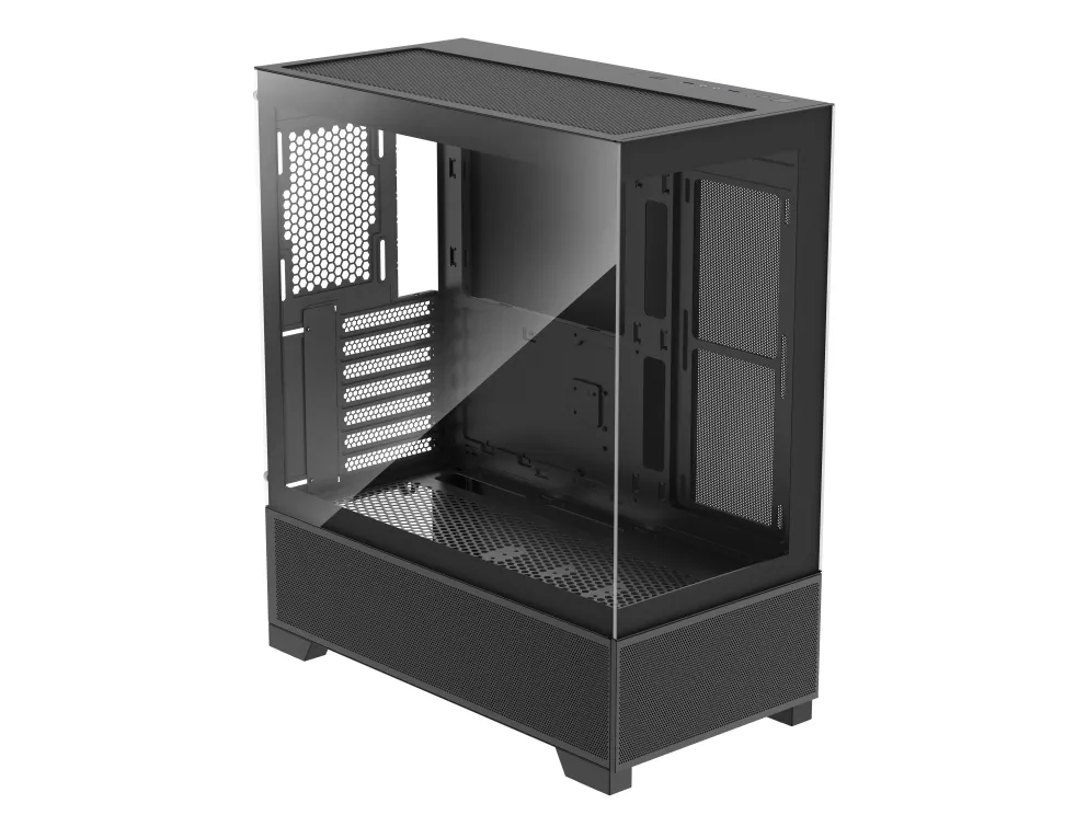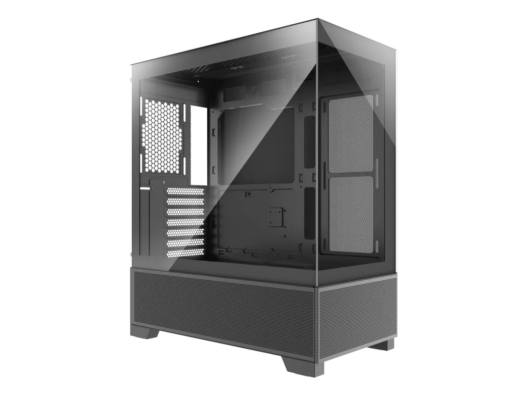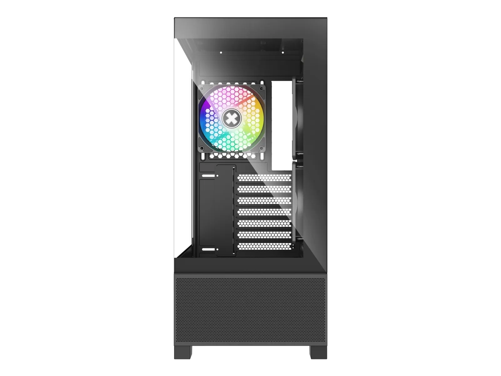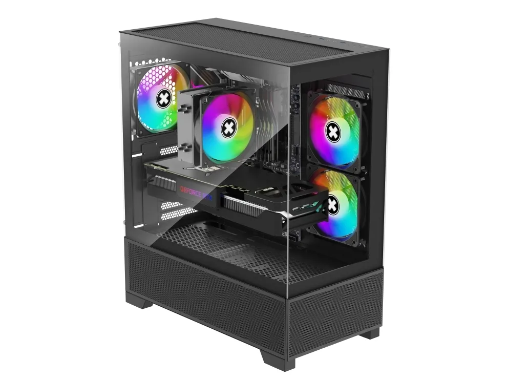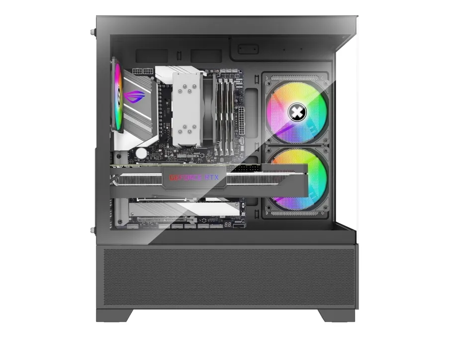 Med en intern konfiguration kan Xilent Beam rumme op til fem lagerdrev og understøtter forskellige blæseropsætninger, der sikrer luftstrøm. Frontpanelet indeholder vigtige USB- og lydstik til perifere enheder. Dette chassis er fremstillet af holdbare materialer som hærdet glas og SPCC-stål og lægger vægt på stil og funktionalitet, hvilket tiltaler gamere og pc-entusiaster.