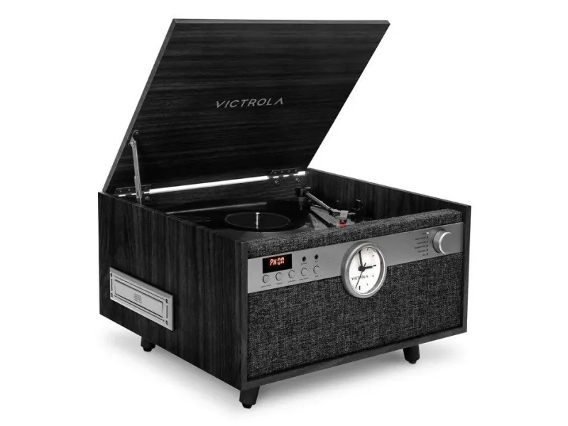 The Century Signature 6-in-1 Wood Record Player Mid-Century Elegance The Victrola Century Signature Bluetooth® record player brings elegant mid-century design to the all-in-one music center.