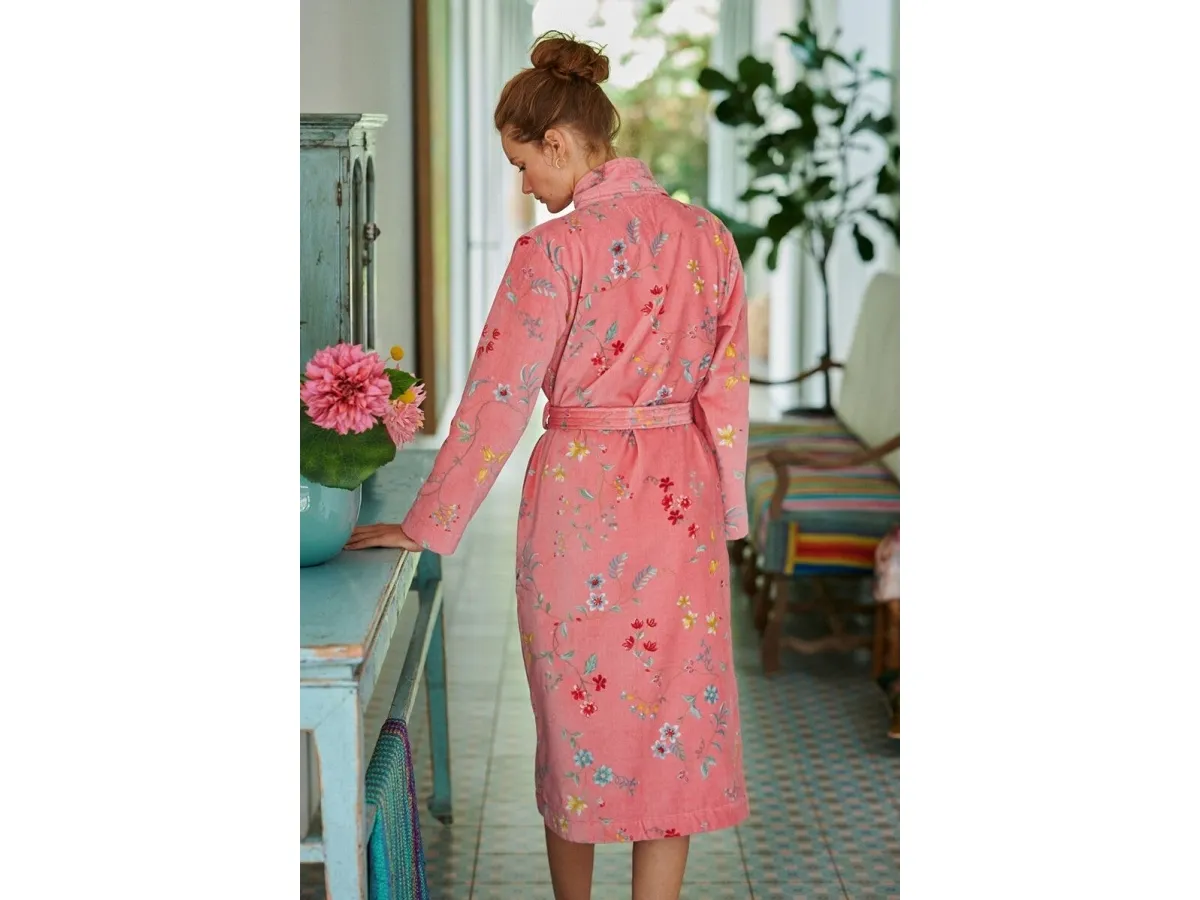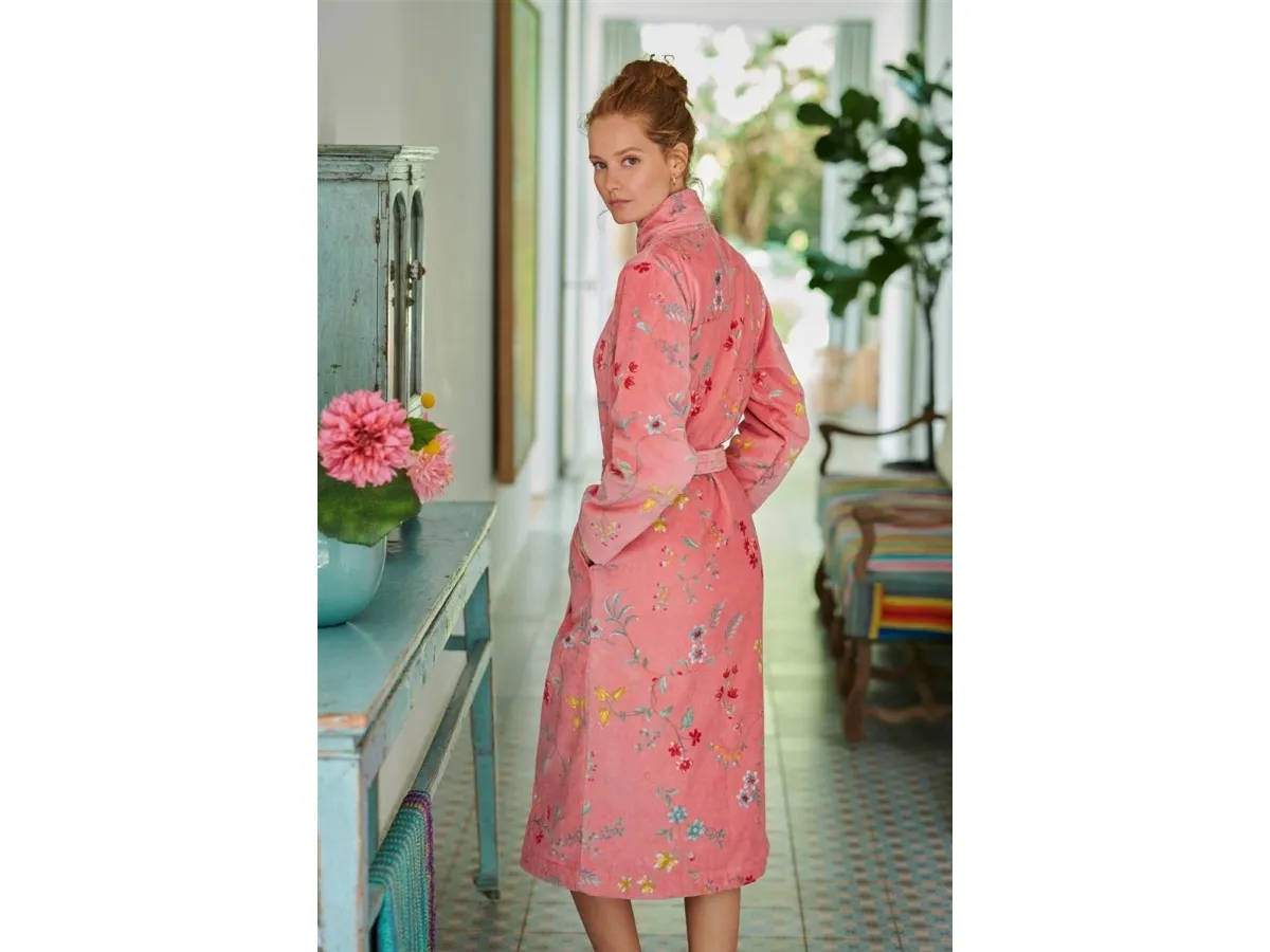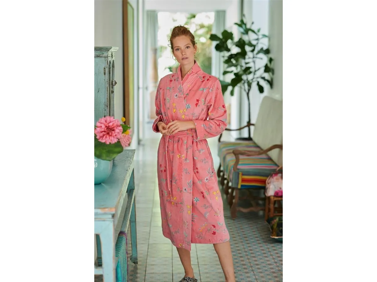 PIP Les Fleurs Badekåbe Pink XXL er en elegant og stilfuld badekåbe fra det populære mærke PIP Studio. Badekåben er lavet af 100% bomulds velour frotte og har et luksuriøst design med et feminint print. Denne badekåbe har et flot rosa farve og er i størrelse XXL. Den har to lommer, et spænde, ærmer med slidser og en hætte, som gør dette til det perfekte valg til den kolde sæson. Denne badekåbe er vaskbar ved 30°C og vil holde sig lækker og blød i lang tid.