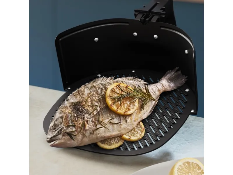 Philips HD9963 pizza-/grillplade er designet til brug med varmluftsfriturere og sikrer perfekt tilberedte måltider. Denne aluminiumsplade er holdbar og har effektiv varmeledning. Det praktiske håndtag gør det nemt at flytte maden, og den kan vaskes i opvaskemaskinen, så den er nem at rengøre efter brug.