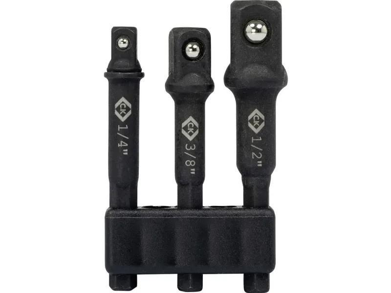 Vorteck Impact-stiknøgleadaptersæt, 65 mm, 3 dele Indhold: 1/4, 3/8 og 1/2 topnøgle-adapter tommer drev x 65 mm, E6,3 hex drev Ekstremt stabil og holdbar takket være produktion af krom-vanadium-stål Egnet til Hohem drejningsmoment Sort bruneret til længere levetid