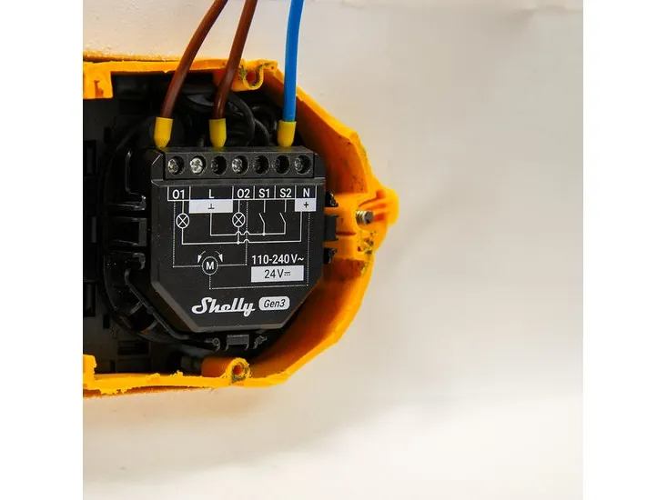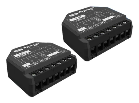 Shelly 2PM Gen3 is a WiFi-controlled 2-channel relay, primarily suitable for automating roller shutters, blinds, awnings, and all two-way AC motors. The two integrated power meters allow for measuring the consumption of each channel separately (PM = Power Metering), making the device also ideal for controlling two channels of lights or two sockets. The device can handle up to 10A per channel and a maximum of 16A in total. Shelly Plus 2PM is designed for installation behind the switch, socket, or lamp outlet and fits in most wall and ceiling boxes thanks to its compact design. Shelly 2PM Gen3 is easily set up and controlled through the Shelly Smart Control app or your preferred Smart Home or Smart Building system. Shelly devices work 100% locally and only require a local network to operate. Shelly can be used alone in the Shelly Smart Control app or with more than 200 partner systems such as Google Home, Amazon Alexa, Home Assistant, Samsung SmartThings, Athom Homey, KNX, and many more. Function Shelly 2PM Gen3 has many applications. It can be powered with 24V DC or 110-230V AC. Shelly 2PM has two switch inputs, which are optional to use. The device automatically measures power consumption on each channel, which can be monitored through the Shelly Smart Control app and easily used for automations. Shelly 2PM can be used for many purposes such as: Two-channel light control, Socket control, Control of roller shutters, blinds, awnings, garage doors, and similar. Connection Shelly 2PM Gen3 can connect to the internet or the local network via 2.4 GHz WiFi. Additionally, the device has built-in Bluetooth like the rest of the Pro, Plus, and Gen3 devices, so it can also be used as a gateway for Shelly Bluetooth battery-powered devices. All Shelly devices work locally without connection to Shelly Cloud, but it is recommended to activate it for easy data storage and increased functionality. The devices can also communicate via MQTT, HTTP, and WebSocket. All support TLS. Hardware The device is equipped with generation 3 hardware, which includes the powerful ESP-Shelly-C38F CPU with 8MB flash. This makes Shelly 2PM Gen3 future-proof and allows for scripting functions and virtual devices for advanced and customized functionality.