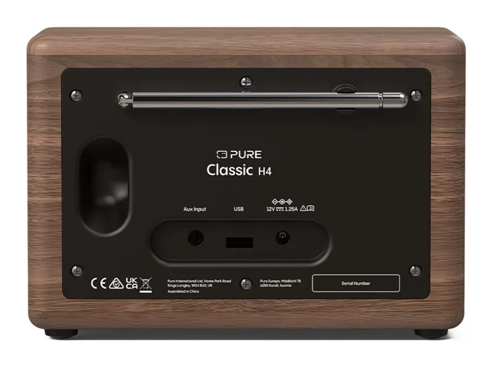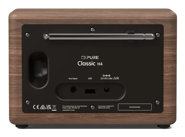 AUX input (3,5 mm mini jack) - bagside USB (4-PIN USB, type A) - bagside
