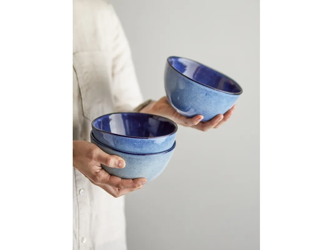 Sandrine Skålen fra Bloomingville tilføjer et naturligt touch til enhver borddækning med sin tyngde, de ujævne kanter og den blanke og delikate glasur. De blå nuancer vil variere, da skålen er håndlavet. Den tåler mikroovn og opvaskemaskine.
