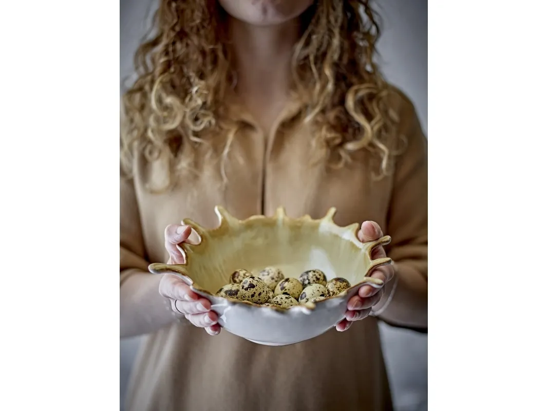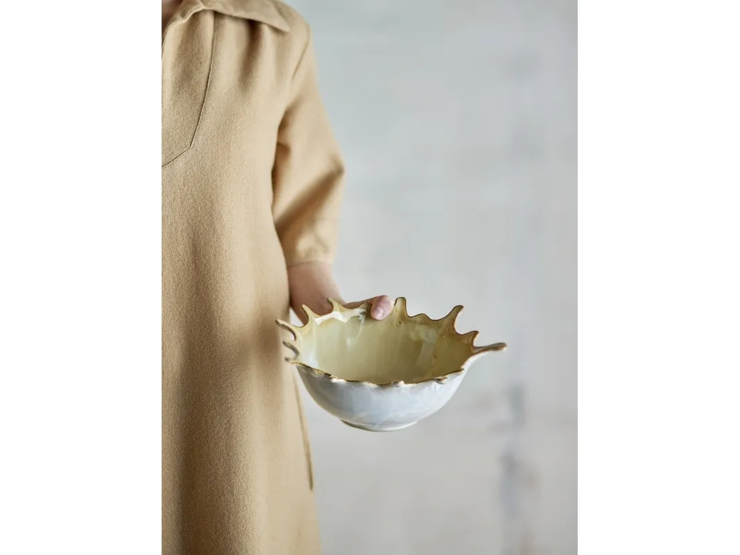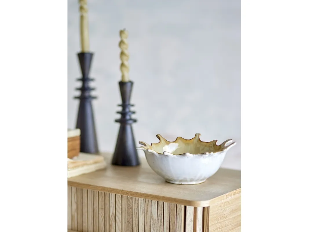 Alcott Skålen fra Bloomingville er lavet af stentøj med en karakteristisk form, samt en smuk reaktiv glasur. Skålen er perfekt til servering eller som en dekorativ detalje. Der kan forekomme variationer i farve og overflade på grund af glasurens naturlige karakter.