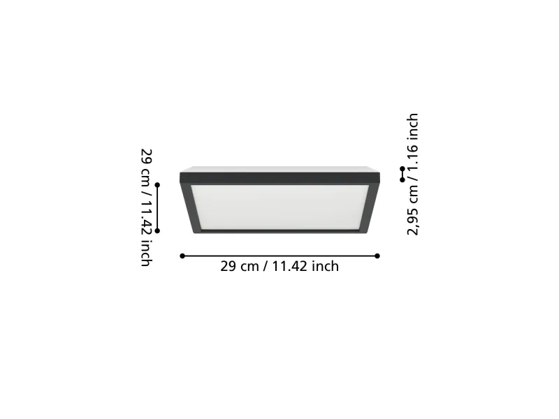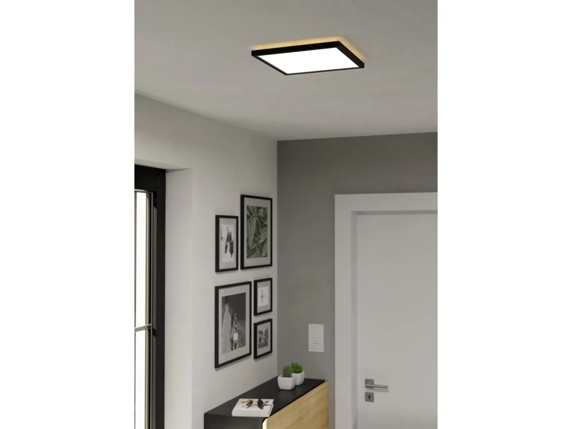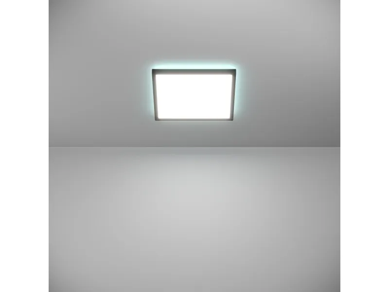 LED-loftlampen ROVITO-Z fra Smart Home-sortimentet connect.z imponerer med et moderne design og innovativ teknologi. Den kvadratiske loftslampe med en længde på 29 cm, en bredde på 29 cm og en højde på kun 3 cm passer perfekt ind i enhver nutidig indretning. Huset er lavet af sort plastik, mens den hvide plastskærm sikrer en jævn og blændfri lysfordeling. De integrerede LED'er giver dig mulighed for at tilpasse lyset helt efter dine ønsker. Du kan vælge mellem varm hvid, neutral hvid og kold hvid belysning samt et bredt udvalg af RGB-farver. Både det direkte og det indirekte lys kan tændes og slukkes separat samt dæmpes. Lampens betjening sker nemt via den gratis app (AwoX Home Control), som tilbyder funktioner som dæmpning, timer, tilstedeværelsessimulering og mere. Takket være Bluetooth- og ZigBee 3.0-teknologi kan du desuden styre lampen via kompatible stemmeassistenter som Amazon Alexa eller Google Assistant. Derudover er betjening også mulig via en separat tilgængelig fjernbetjening.