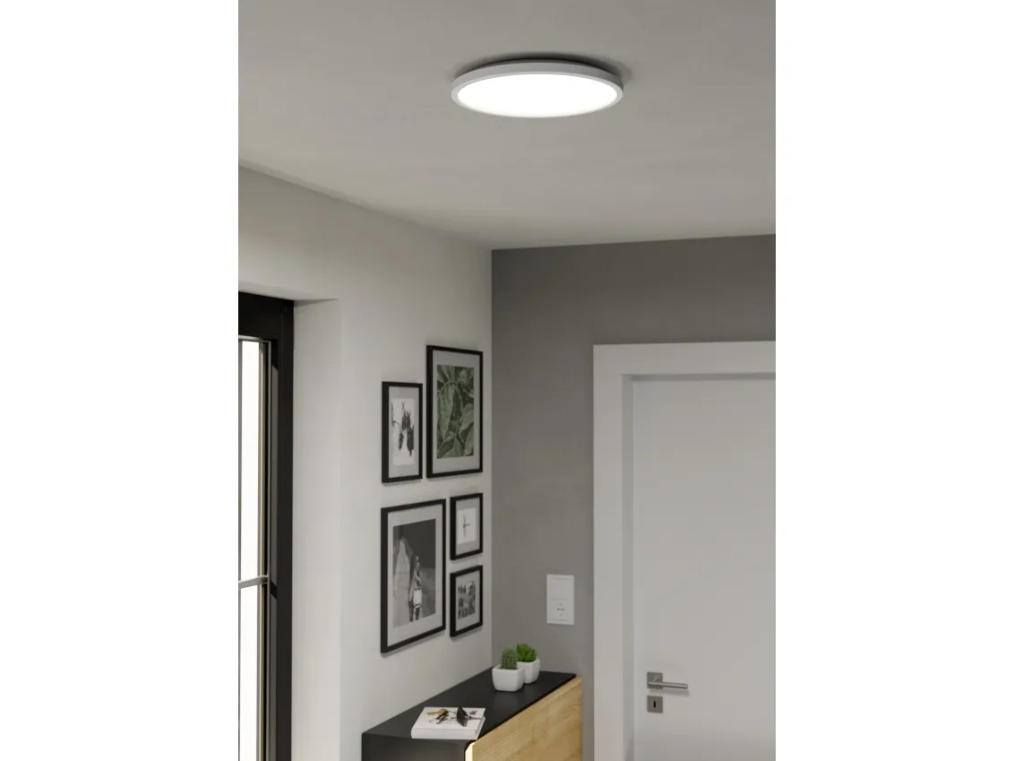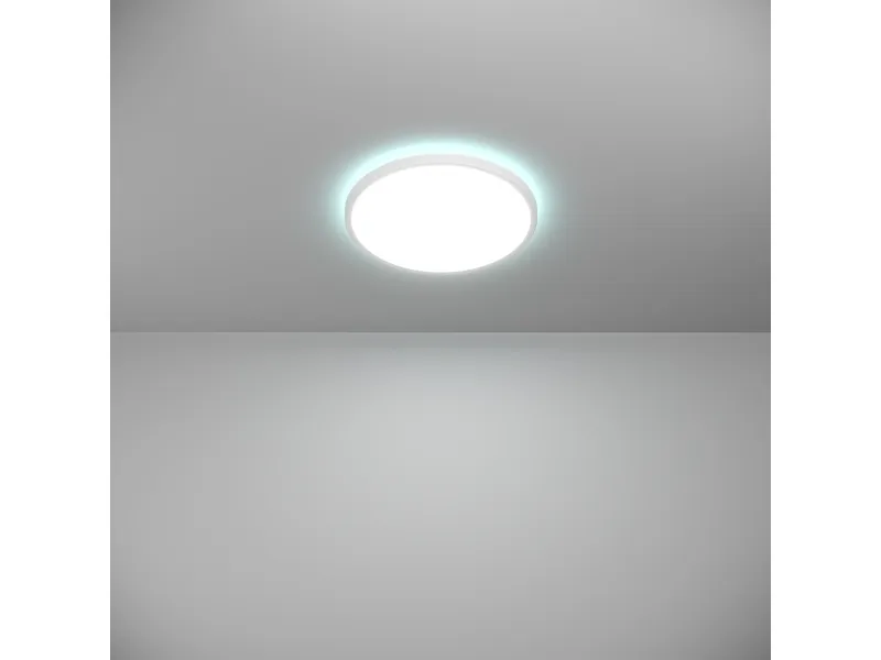 LED-loftlampen ROVITO-Z fra Smart Home-sortimentet connect.z kendetegnes ved sit minimalistiske design. Med en højde på kun 3 cm og en diameter på 30 cm passer den runde loftslampe problemfrit ind i ethvert boligkoncept. Både huset og skærmen er lavet af hvid plastik. De integrerede LED’er tilbyder fleksible lysmuligheder: Vælg mellem varmt hvidt, neutralt hvidt eller koldt hvidt lys samt en række RGB-lysfarver. Det øverste lys i denne lampe giver individuelle RGB-indstillinger til indirekte belysning, mens det nederste lys kan indstilles fra varmt hvidt til koldt hvidt. Både det direkte og det indirekte lys kan tændes og slukkes samt dæmpes separat. Styringen af lampen sker via den gratis app (AwoX Home Control), som tilbyder mange komfortfunktioner som dæmpning, timer og tilstedeværelsessimulering. Takket være Bluetooth og ZigBee 3.0 kan lampen også styres via kompatible stemmeassistenter som Amazon Alexa eller Google Assistant. Derudover er styring via en separat tilgængelig fjernbetjening mulig. ROVITO-Z LED-loftslampen fra connect.z smart home-serien imponerer med sit moderne design og innovative teknologi. Den firkantede loftslampe med en længde på 50 cm, en bredde på 50 cm og en højde på kun 3 cm passer perfekt ind i ethvert moderne interiør. Huset er lavet af sort plast, mens den hvide plastskærm sikrer en jævn og blændfri lysfordeling. De integrerede LED'er giver dig mulighed for at designe lyset efter dine ønsker. Du kan vælge mellem varm hvid, neutral hvid og koldt hvidt lys samt en bred vifte af RGB-farver. Både direkte og indirekte lys kan tændes og slukkes separat og dæmpes. Lyset styres bekvemt via den gratis app (AwoX Home Control), som tilbyder dig funktioner som dæmpning, timer, tilstedeværelsessimulering og meget mere. Takket være Bluetooth og ZigBee 3.0-teknologi kan du også styre lyset via kompatible stemmeassistenter som Amazon Alexa eller Google Assistant. Derudover er betjening også mulig via en separat tilgængelig fjernbetjening.