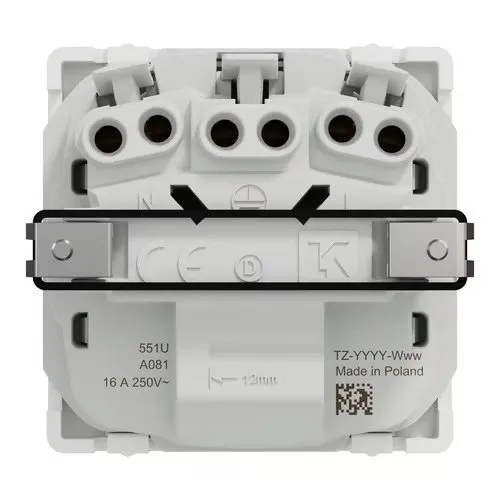 LK One stikkontakt 2-polet med DK-jord er forsynet med Schneider Electric's patenterede flexFront funktion. Denne funktion sikrer et helt plant og æstetisk udseende, når stikkontakten ikke er i brug. Samtidig sikrer flexFront at der ikke samles støv og skidt i stikkontaktens brønd. Den er bygget til lang levetid, og leveres med 20 års garanti. Mærkespænding er 250V AC ved 50 Hz, og mærkestrømmen er 16A. Stikkontakten er forsynet med dobbelte skrueløse terminaler. Disse er placeret optimalt på linje, og sikrer hurtig og nem ledningsmontering. Udløserknapper er ligeledes placeret så det er hurtigt og nemt at demontere ledningerne. Den har en nominel driftsspænding (Ue) på 250 VAC ved 50 Hz og en nominel driftsstrøm (Ie) på 16 A. Monteres i FUGA tekniske monteringsrammer, planforsænket i alle LK FUGA Air installationsdåser. Desuden i gamle FUGA indmurings- og indstøbningsdåser. Den indeholder skrueløse terminaler, som sparer tid under installationen. Stikkontakten har IP20-beskyttelsesgrad, og er fremstillet af polycarbonat (PC) og akrylnitril-butadien-styren (ABS). Produktets dimensioner er (B) 50 mm x (H) 50 mm x (D) 30 mm. Den har en IP20-beskyttelsesgrad. LK One vandt iF Design Award 2025 takket være sin fremragende ergonomi, innovation og æstetik. LK One-produkter tilbyder hurtig installation, god funktionalitet og unikt design. Den har DEMKO- og CE-produktcertificeringer.