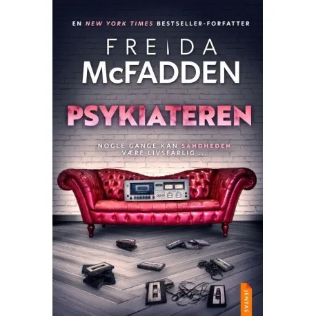 Nogle gange kan sandheden være livsfarlig ... Det nygifte par Tricia og Ethan er på jagt efter deres drømmehus. Men da de besøger den afsidesliggende ejendom, som engang tilhørte Dr. Adrienne Hale, en anerkendt psykiater, der forsvandt sporløst fire år tidligere, bliver de fanget i en voldsom snestorm og må blive i huset, indtil stormen har lagt sig. Tricia går på jagt efter en bog, hun kan underholde sig med, indtil uvejret driver over, og støder på et hemmeligt rum. I rummet finder hun båndoptagelser fra hver eneste patient, som Dr. Hale nogensinde har behandlet. Mens Tricia lytter til kassettebåndene, bliver hun langsomt klogere på den skræmmende række af begivenheder, der førte til Dr. Hales mystiske forsvinden. Tricia afspiller båndene ét efter ét til langt ud på natten. For hvert bånd, hun hører, falder endnu en chokerende brik i puslespillet på plads, og Dr. Adrienne Hales spind af løgne bliver langsomt afsløret. Og så når Tricia frem til det sidste kassettebånd. Det, som afslører hele den grufulde sandhed. --- "Psykiateren er en roman med en perfekt spændingskurve! Jeg blev draget ind i historien lige fra starten og læste åndeløst videre indtil den chokerende slutning. Foruroligende, opslugende og herligt uhyggelig – det her er en roman, som læserne ikke vil kunne lægge fra sig." - Karen McQuestion "Den her bog er virkelig indbegrebet af en thriller, der er umulig at lægge fra sig. Jeg ville have læst den i ét stræk, hvis jeg ikke havde et arbejde at passe ved siden af. Og da plot-twistet kom, gispede jeg, tog mig til ansigtet og brød ud i latter." - Curling Up With a Coffee and a Kindle "Endnu en gang har McFadden skabt en fantastisk og tilfredsstillende thriller med store, sprængfarlige afsløringer. Sørg for at have noget at holde fast i, mens du læser, for hun trækker tæppet væk under dig!" - Caffeine Read Repeat "Wow! En af mine favoritter fra Freida! Plot-twistene: Jeg havde IKKE set dem komme. Så gode! Jeg har været i en total læsetørke på det seneste, og den her bog fik mig helt ud af den. Jeg var så fascineret af hver eneste side, jeg vendte!" - Graciously Booked "Spænding, der får dig helt ud på kanten af sædet! En fængslende psykologisk thriller med masser af plot-twists og uventede drejninger. Jeg troede, jeg havde regnet den ud, men jeg tog så meget fejl." - Goodreads-anmelder