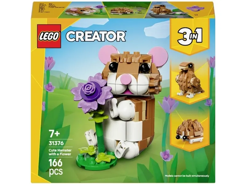 3-i-1-LEGETØJSDYR TIL BØRN – Med LEGO® Creator 3-i-1-byggelegetøjet Sød hamster med blomst (31376) kan piger og drenge fra 7 år bygge og ombygge 3 søde legetøjsdyr med de samme klodser