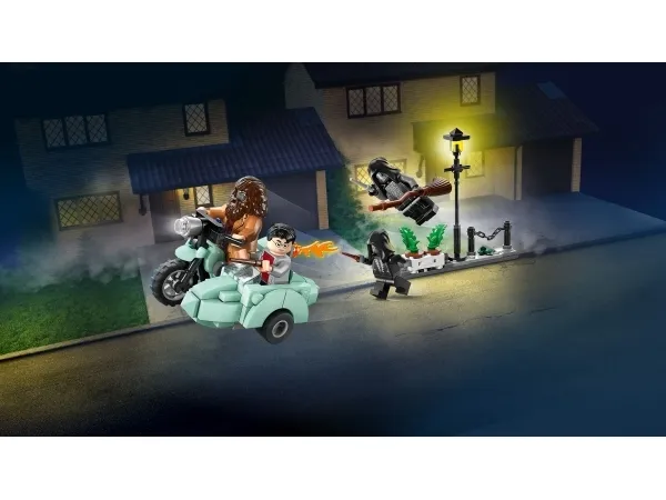 4 LEGO® HARRY POTTER™ MINIFIGURER – Eventyrlig rolleleg med med Harry Potter, Rubeus Hagrid™ (iført sine karakteristiske motorcykelbriller) og 2 dødsgardister