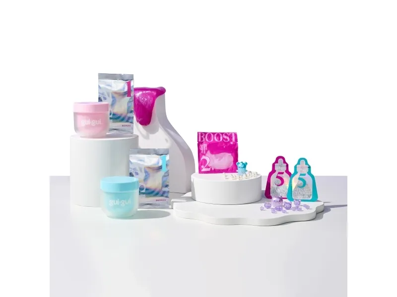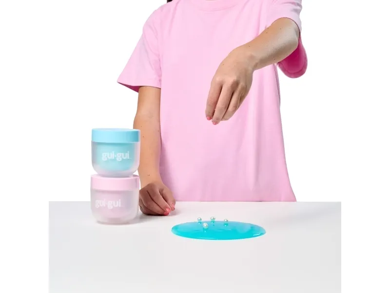 GUI GUI Deluxe 2 stk. giver dobbelt så meget kreativ slim-leg! Dette eksklusive sæt indeholder to unikke slimes inspireret af skønhedsverdenens farverige og sanselige univers. Hver slim har sin egen struktur og duft – vælg mellem glat Gloss, gennemsigtig Clear, blød Butter eller luftig Cloud. I hver beholder gemmer sig også en overraskelse: en glitrende charm, glimmer og en nuttet samlerfigur. Med denne sanselige unboxing-oplevelse kan børn skabe deres egne smukke, duftende slimkreationer. Fra 6 år.