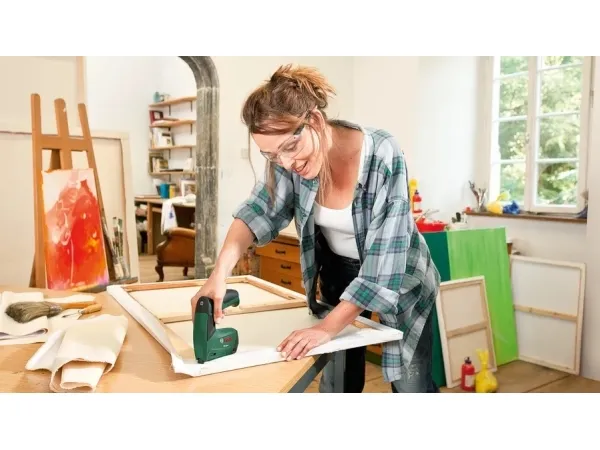 Den mindste lithium-ion-hæftepistol i sin klasse gør dig mobil - når som helst, hvor som helst. Sig farvel til hammer, skruer, lim og tegnestifter: Med den praktiske batteridrevne hæftepistol fra Bosch kan du hurtigt og nemt fastgøre forskellige materialer som f.eks. stof, læder eller pap på overflader i blødt træ.