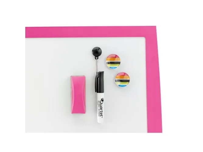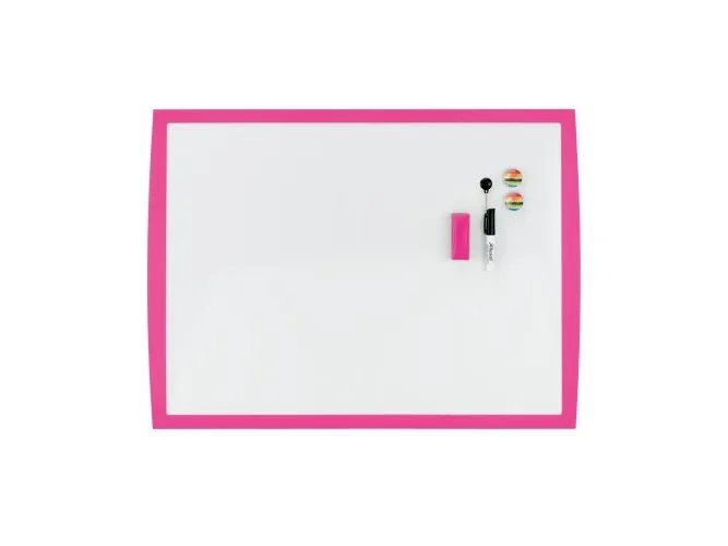 - Pretty Pink Curved Plastic frame - Magnetic dry erase surface - Includes mounting kit, one black shortie marker, two magnets and eraser - 430x585mmRexel JOY Whiteboard Pretty Pink 585x430mm. Product colour: Pink, Pink. Width: 585 mm, Height: 430 mm. Package width: 585 mm, Package depth: 20 mm, Package height: 430 mm