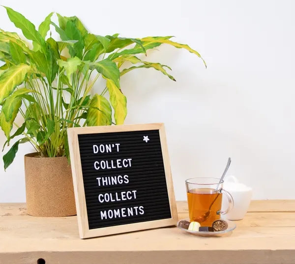 Lav din unikke besked eller menu med bogstavetavlen Massiv træramme med filtoverflade 176 akrylbogstaver, tal og ikoner Inkluderer monteringsbeslag og bordstativ Fås i forskellige størrelser