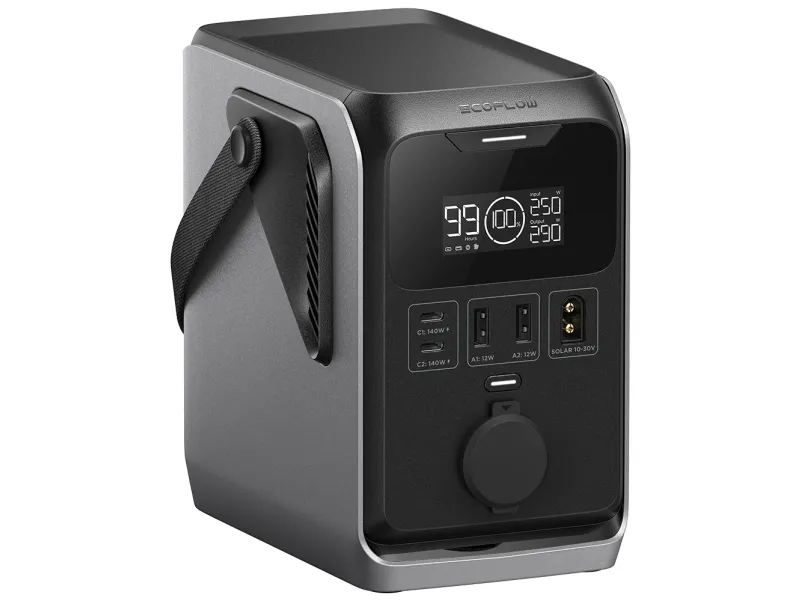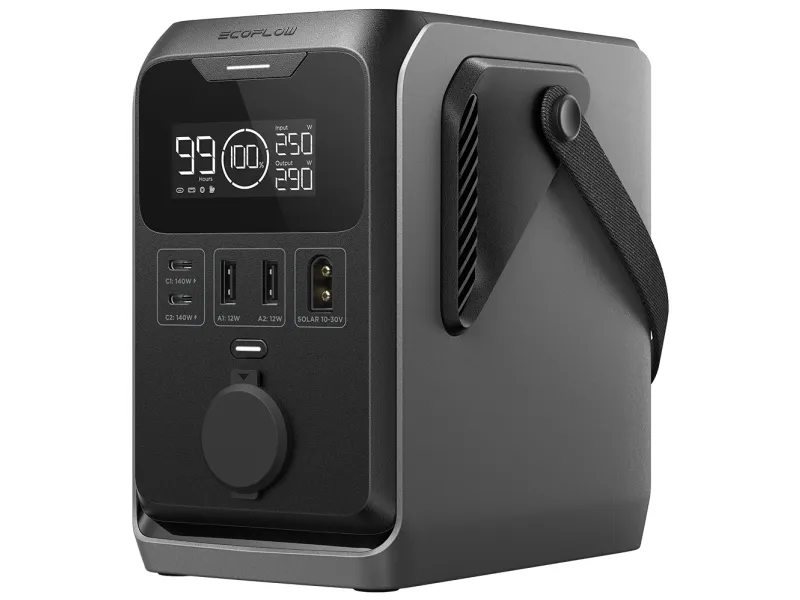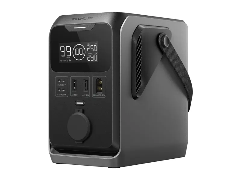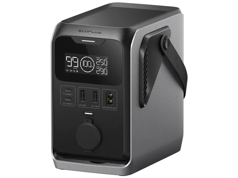 The EcoFlow TRAIL 300 DC station offers two USB-C PD 140 W ports, two USB-A 12 W ports and a 12-volt car socket. This allows you to connect several devices to it simultaneously. This is a great convenience when you use multiple devices in the field or travel with a group of friends - no one will have to wait their turn to charge their phone or laptop anymore!