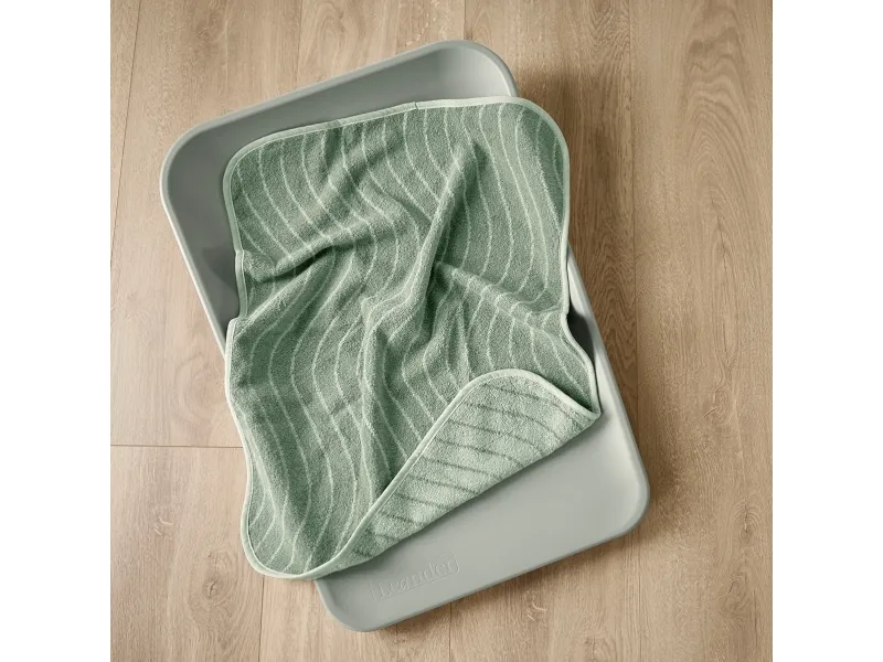 Den bløde Leander Topper er lavet af økologisk bomuldsfrotté og passer perfekt til formen på Leander Matty™ puslepuden og Leander Wally™ væghængt puslebord. Brug den som et lille håndklæde, eller læg den under din baby, når du skifter ble. Det vil skåne din puslepude, så den kan holde i mange år.