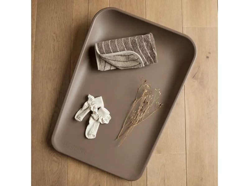 Den bløde Leander Topper er lavet af økologisk bomuldsfrotté og passer perfekt til formen på Leander Matty™ puslepuden og Leander Wally™ væghængt puslebord. Brug den som et lille håndklæde, eller læg den under din baby, når du skifter ble. Det vil skåne din puslepude, så den kan holde i mange år.