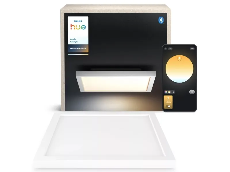 Tilslut Philips Hue White ambiance Aurelle panelet til dit Philips Hue system, og få glæde af naturligt hvidt lys, der hjælper dig med at vågne, få energi, fokusere, læse og slappe af. Designet til at skabe en fornemmelse af mere plads i dit hjem.