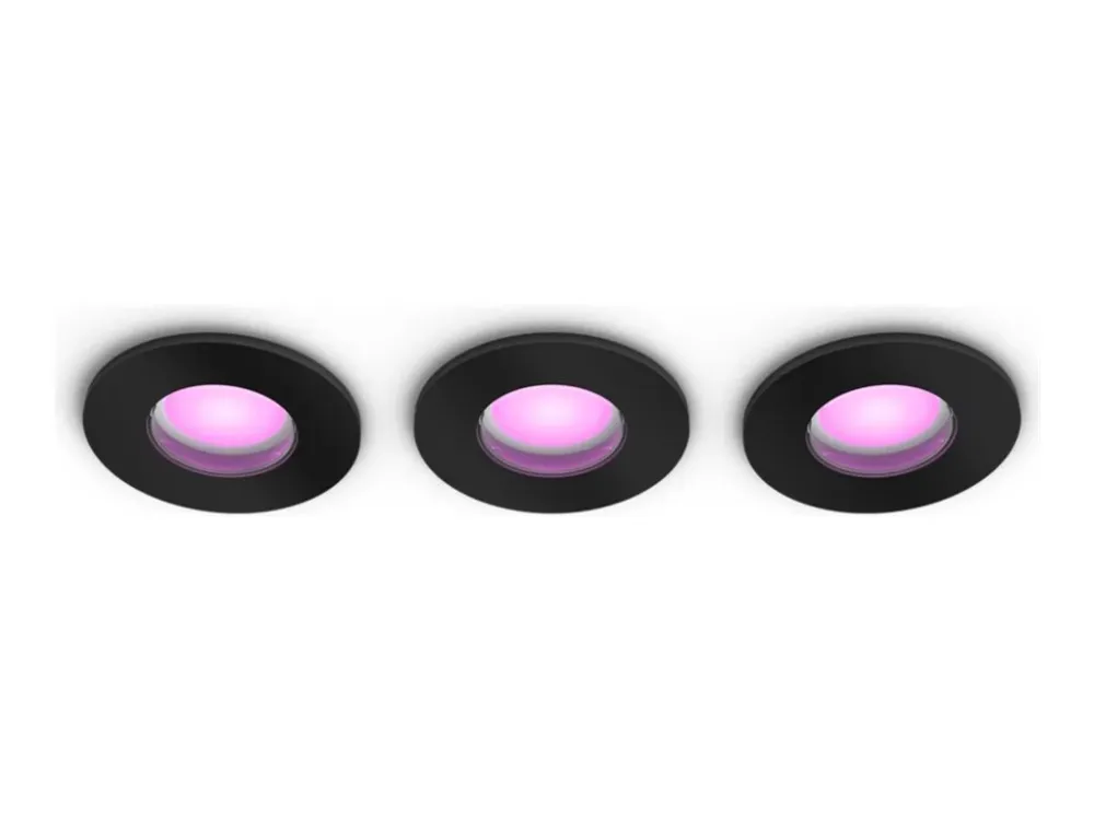 Philips Hue White and Color Ambiance Xamento - Indlejret spotlys - LED-spot lyspære - GU10 - 4.2 W - klasse E - 16 millioner farver/varmt til køligt hvidt lys - 2000-6500 K - rund - sort (pakke med 3)