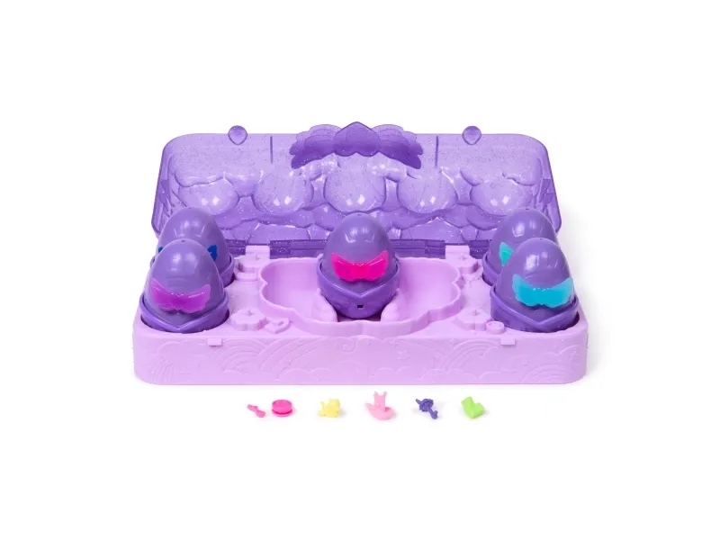 Experience a neon color hatch with the Hatchimals Alive Neon Rainbow Carton. With your love and care, these Hatchimals come to life with neon eggs that hatch in water, changing the water’s color. Open the sparkly lid to discover a built-in hatch zone and 5 Hatchimals eggs containing 5 characters, each inspired by Moody Midnight hues. Before hatching, choose a spot that’s easy to clean and protect your play area. Set an egg in the hatch zone and remove the wings, then fill the area with water. In seconds, the water changes color as your neon friend starts revealing itself. Once all 5 super cute characters have been revealed, attach their wings, and use the 6 nurturing accessories (rattle, blocks, rubber duck and more) to add to your imaginative storytelling. Dry the carton and display the characters inside or take the carton on-the-go. Those who enjoy action figures, small toys, dolls, and doll house play will love Hatchimals surprise toys. A fun gift idea for birthday gifts for girls and boys, Easter egg fillers, holiday gifts and more. Hatch the Neon Rainbow with the Hatchimals Alive Carton.