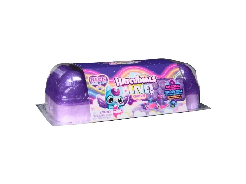 Includes: 5 Hatchimals CollEGGtibles, 1 Carton, 6 Nurturing Accessories, 5 Pairs of Wings, 1 Checklist, 1 Instruction SheetHatchimals Alive, Neon Rainbow Egg Carton Toy, Cute Easter Basket Stuffers, Includes 5 Collectible Figures in Color Reveal Eggs, 11 Accessories. Recommended age (min): 3 yr(s), Product colour: Multicolour